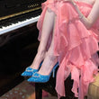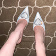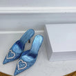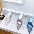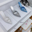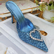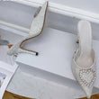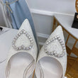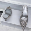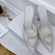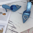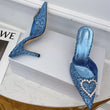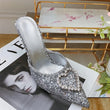 Shallow Mouth High-heeled Women's Shoes Love Rhinestone Shining Thin Heel Pump Slippers