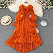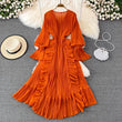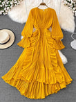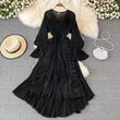Holiday Ankle Length V Neck Puff Sleeve Lace Elegant Evening Party Summer Dress