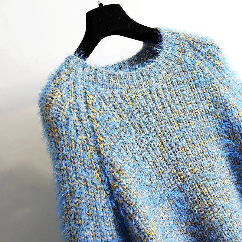 Casual Y2K Knitting Long Sleeve Pullovers For Women Vintage Loose Fit Knitwear