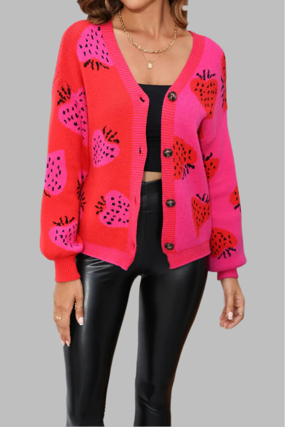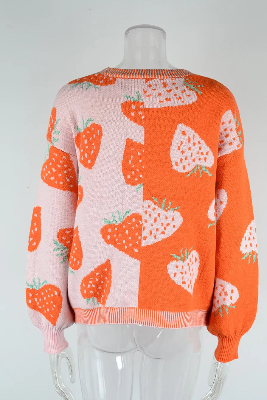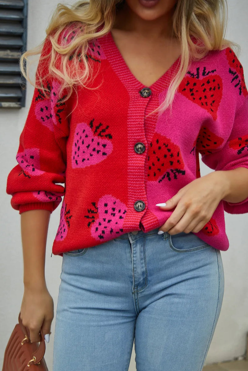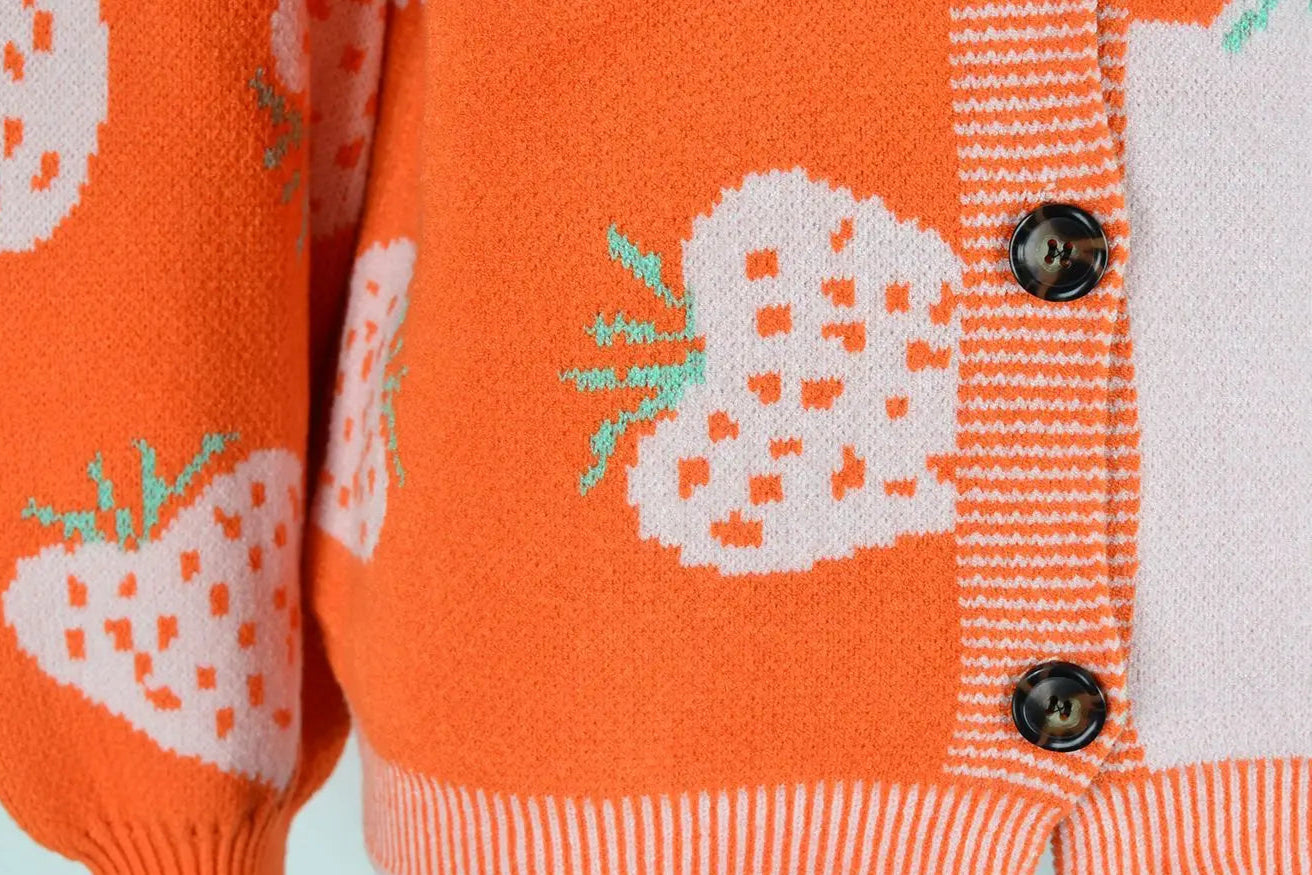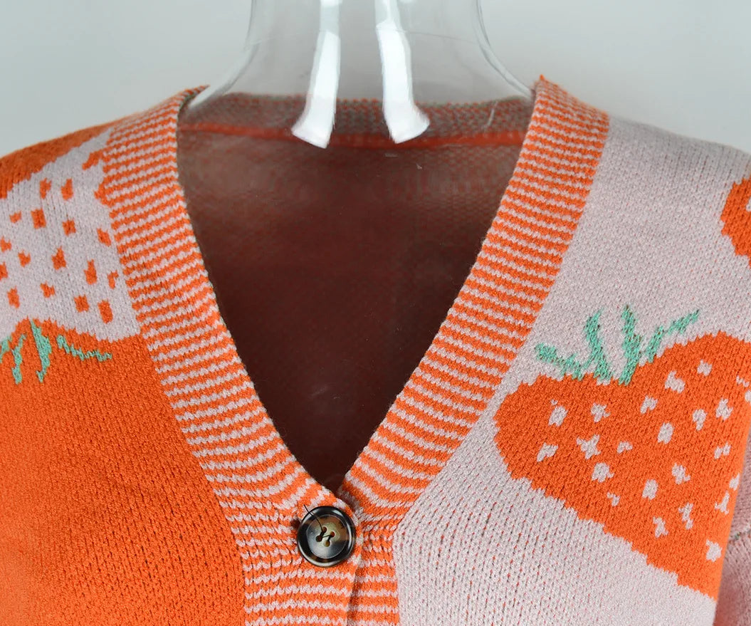 Cross border Sweater V-neck Button Cardigan Strawberry Coat Sweater Female