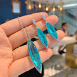 Blue Paraiba Crystal Gemstone Pendant Necklace Jewelry Set Gift for Women