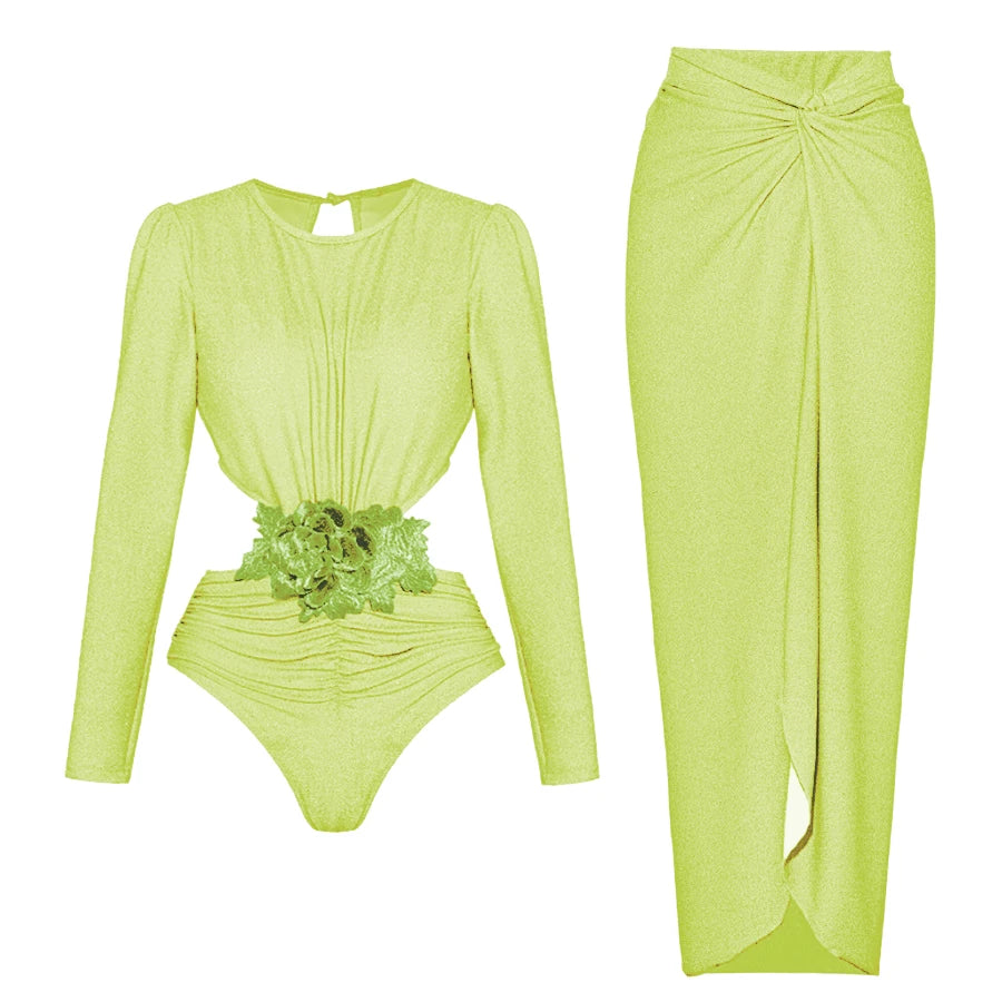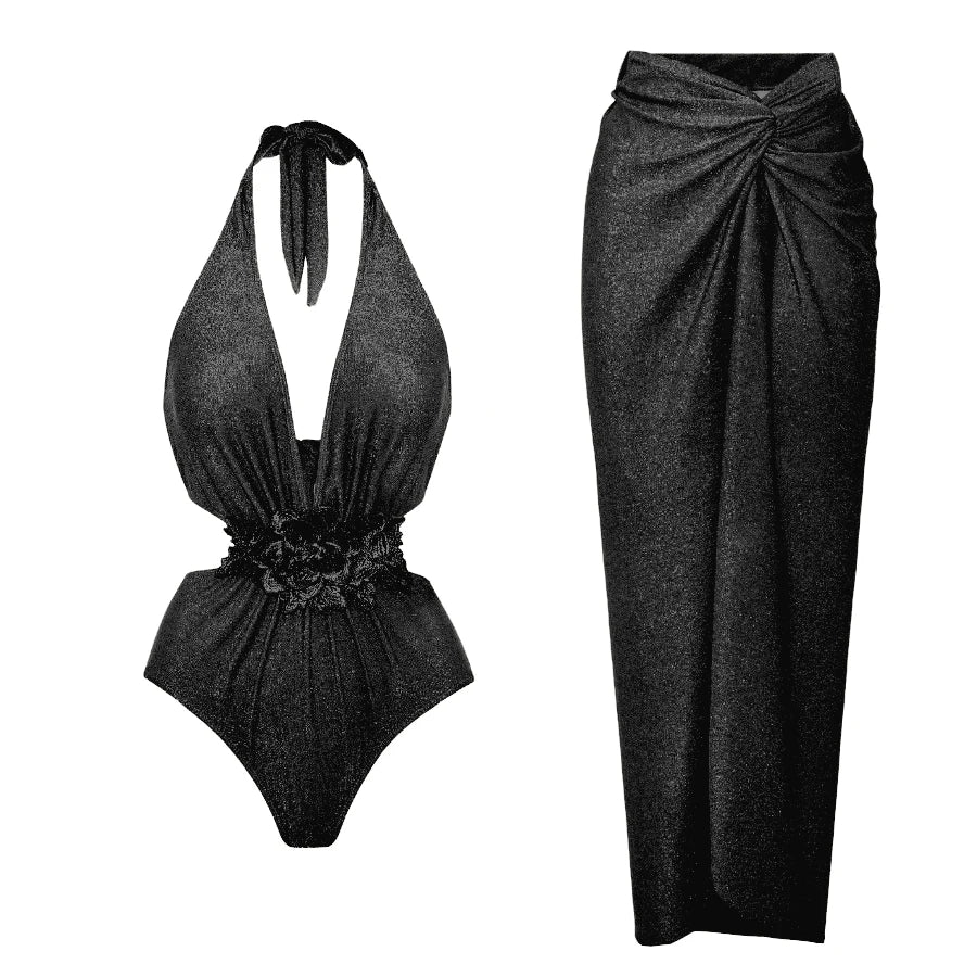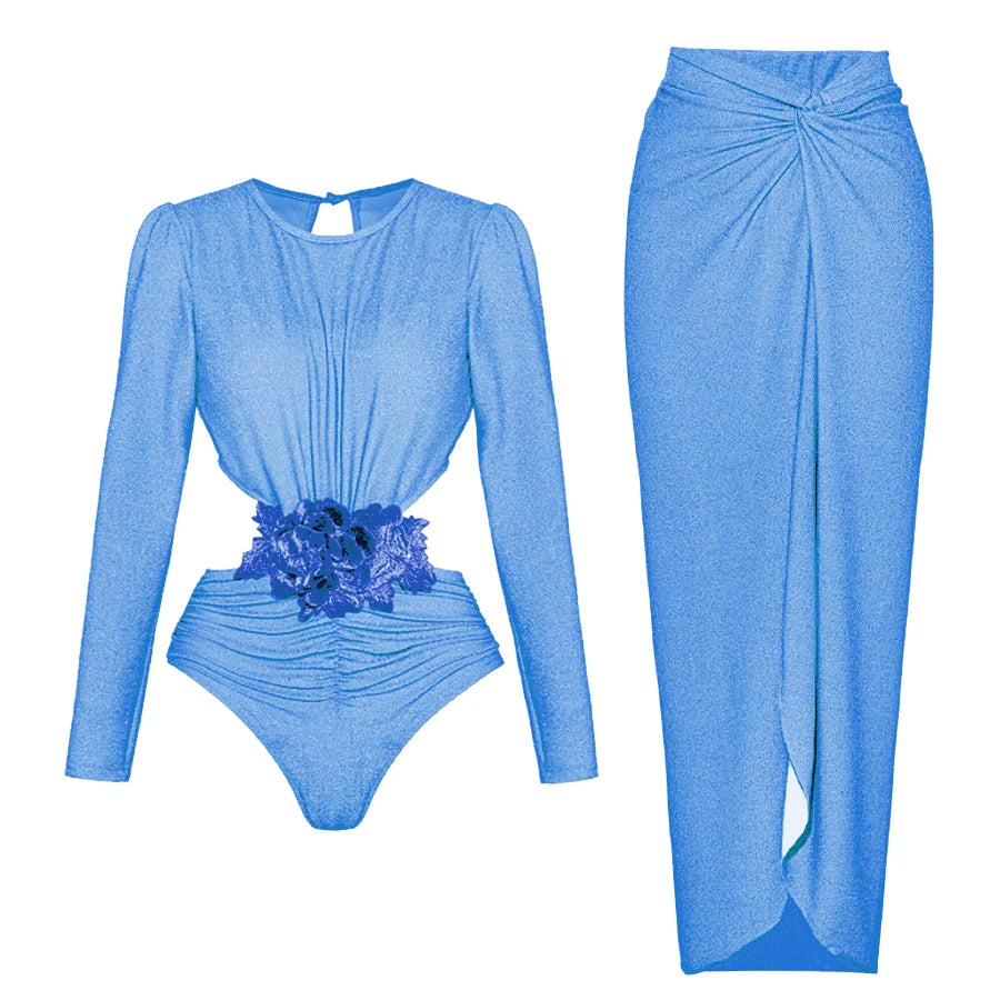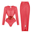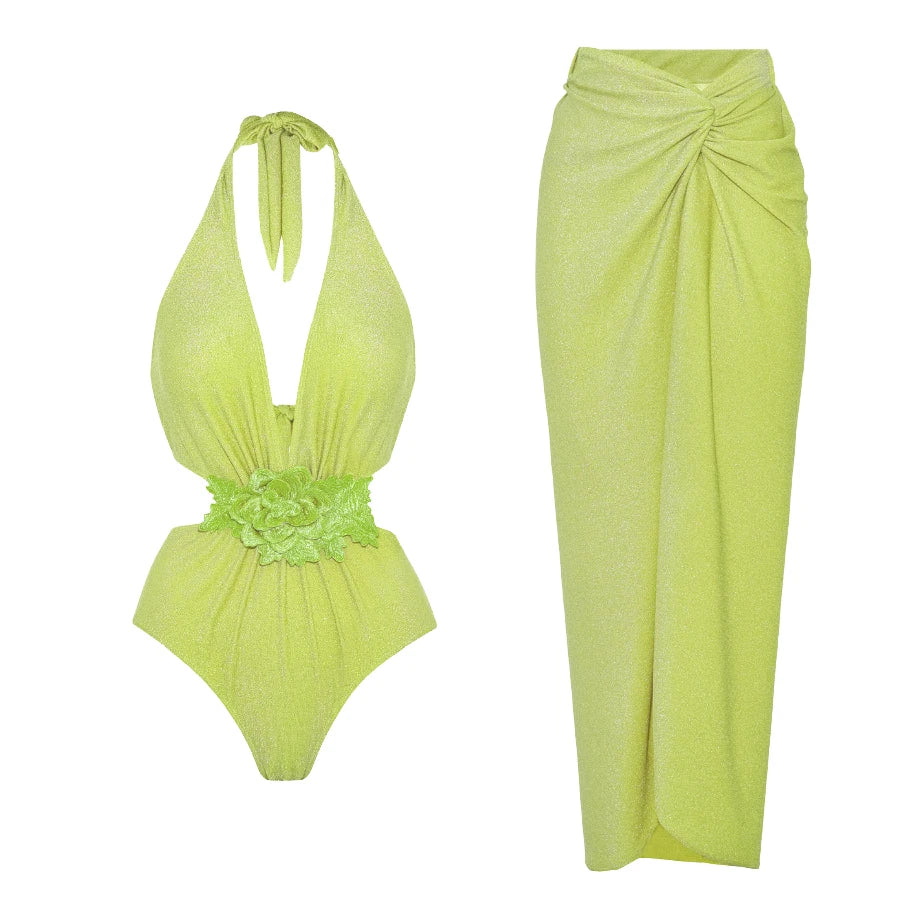 Swimwear Women With Skirt Bathing Suit Summer New Ruffle Splice Print Beachwear Bikini Cover Ups