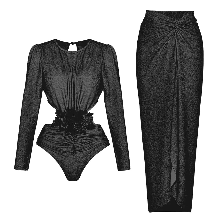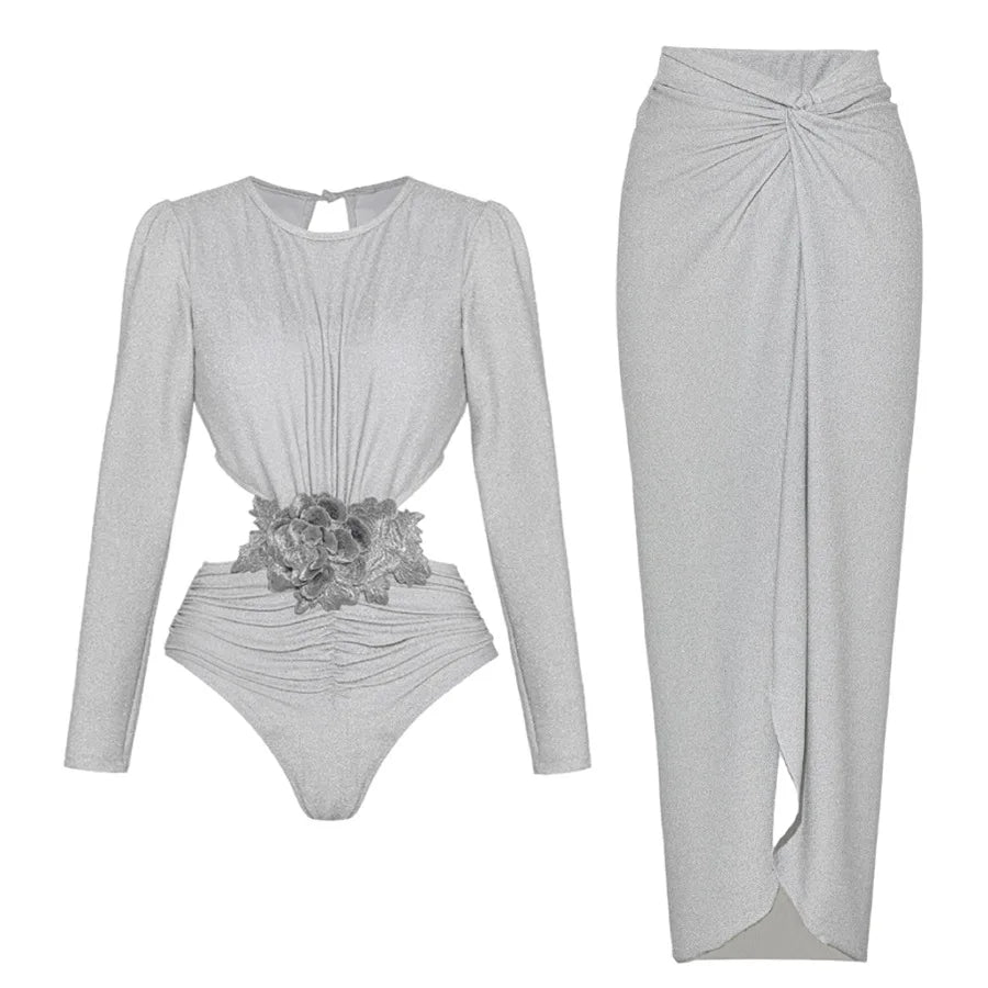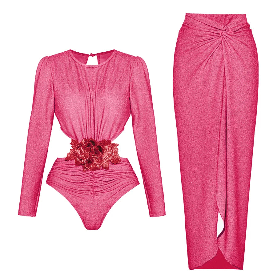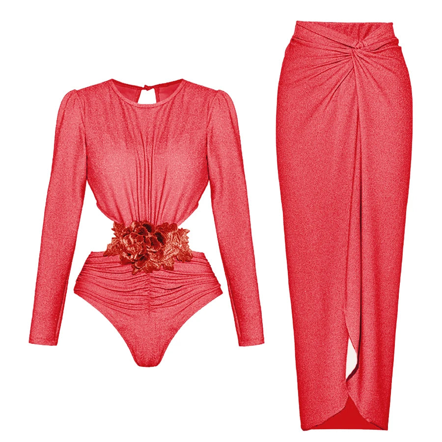Swimwear Women With Skirt Bathing Suit Summer New Ruffle Splice Print Beachwear Bikini Cover Ups