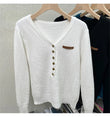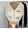 Thick Velvet V-neck Sweater Women Korean Fashion Lined Warm Knitted Pullover