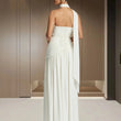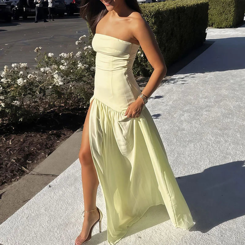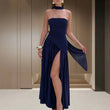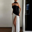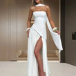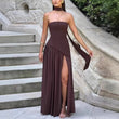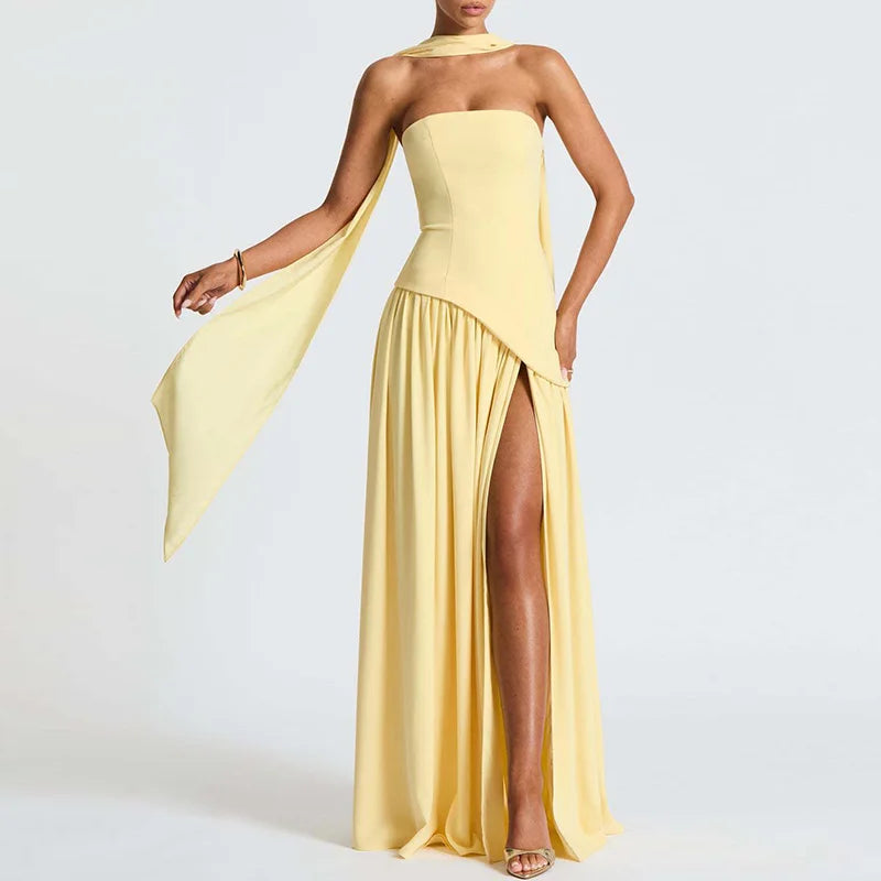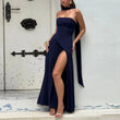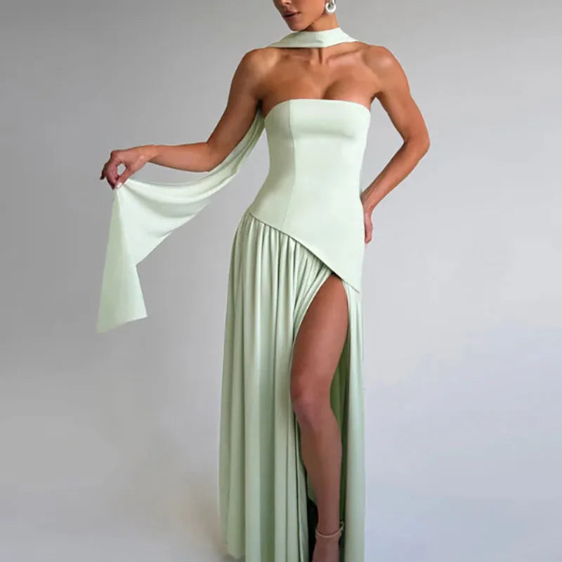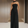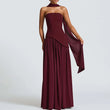 Elegant Strapless Scarf Neck Pleated Dress Woman Sexy Slim Solid Backless Evening Dress