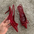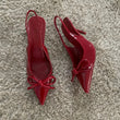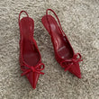 High Heels Women Weddings Bridal Shoes Bow Shallow Pointed Toe Slingback Heels