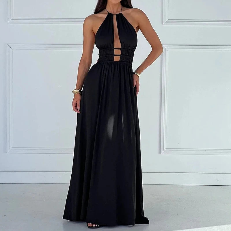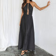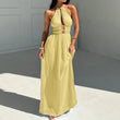 Halter High Waist Holiday Maxi Dress Simple Solid Pleated Long Dress Beach Dresses