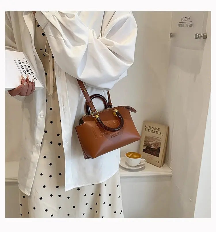 PU Leather Boston Bag Women's Shoulder Bag - Stylish Handbag for Work, Casual Purse