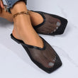 Flats Mules Women Slippers Mesh Sandals New Square Toe Slippers