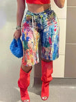 Women's Pockets Graffiti Shorts Hot Casual Summer Shorts Mid Waist Short