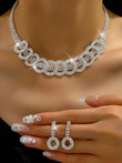 3pcs Fashion Jewelry Set with Rhinestone Inlaid Round Necklace Earrings Jewelry Set Suitable for Women's Party Accessories