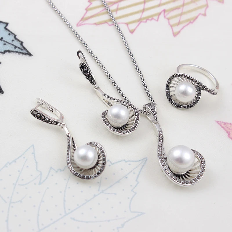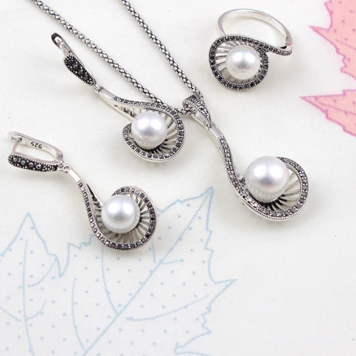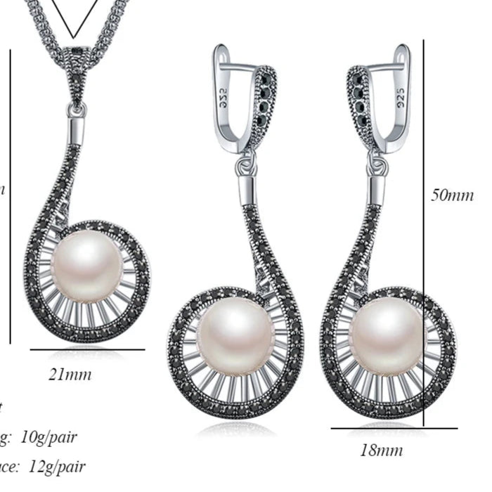Vintage Pearl Jewelry Set For Women White Pearl Drop Earrings Long Pendant Necklace