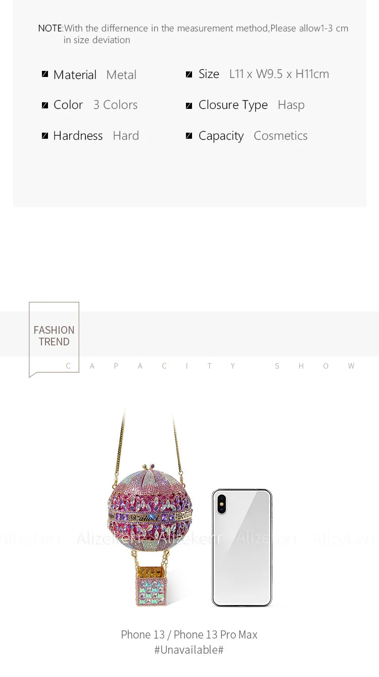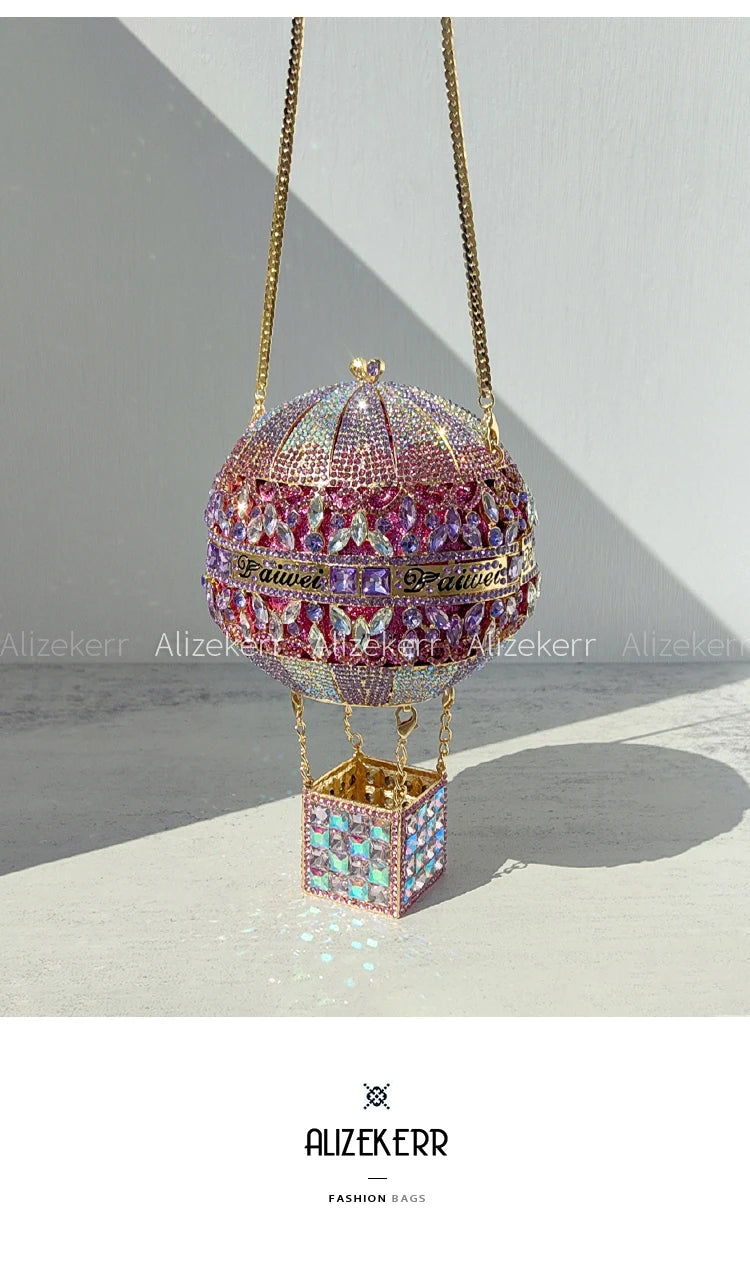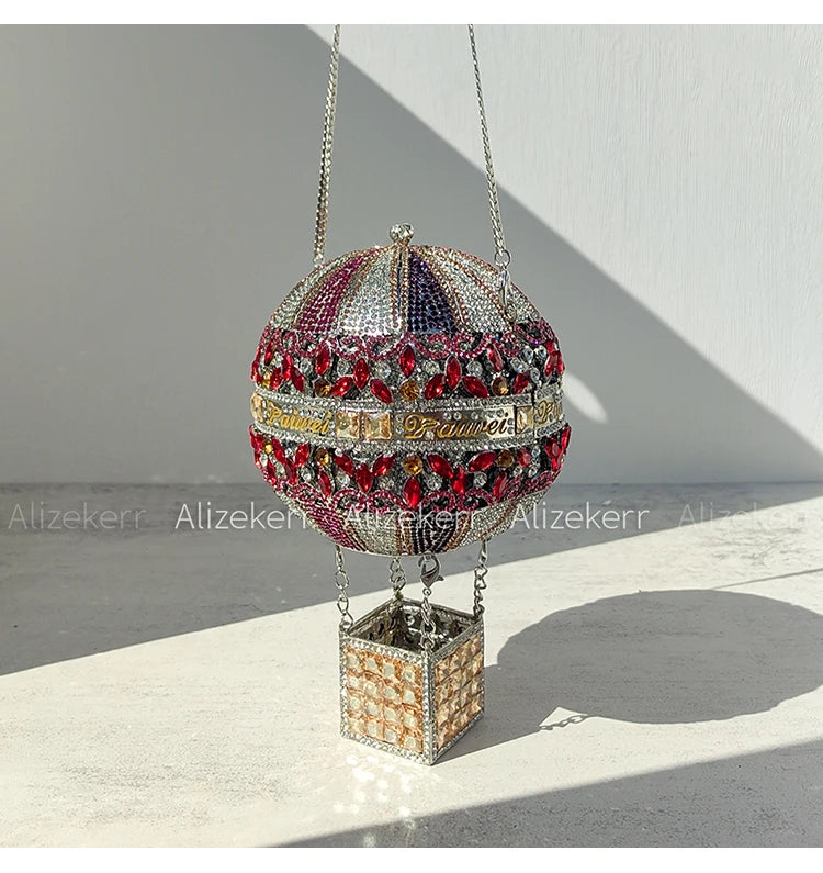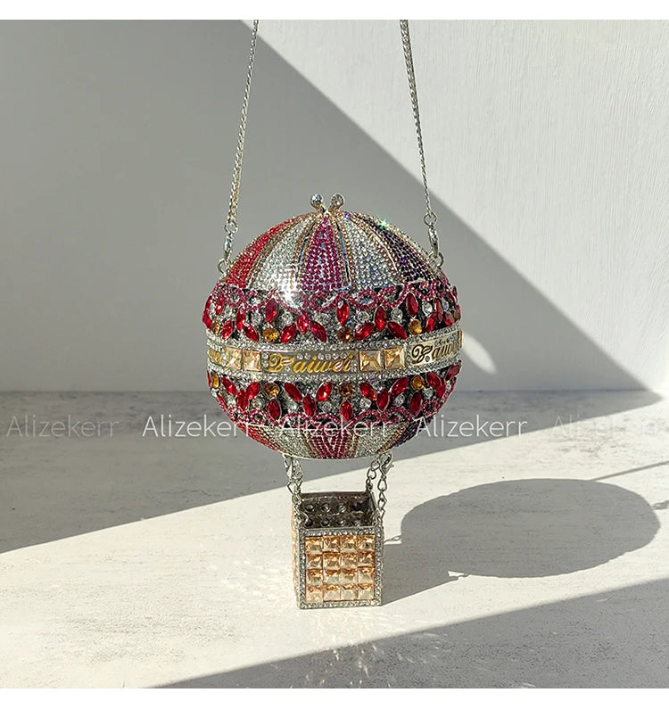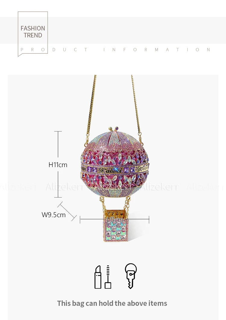 Balloon Shaped Crystal Evening Bags Women Luxury Classy Unique Clutch Purse