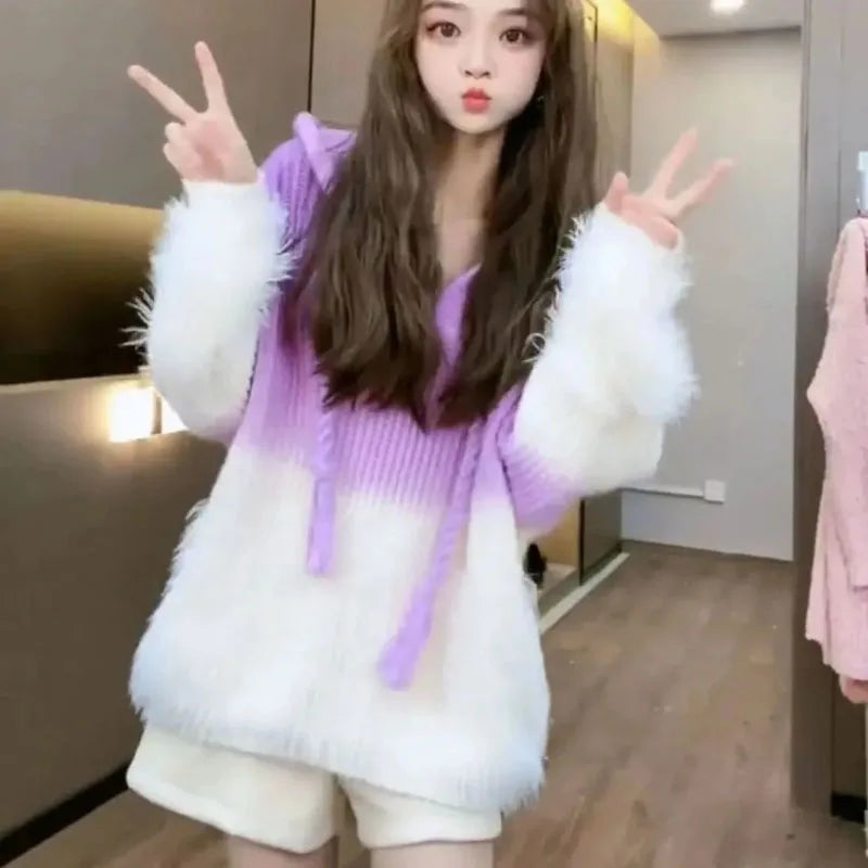 Tassel Pullover Long-Sleeved Sweater Hooded Loose Knitwear
