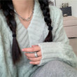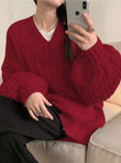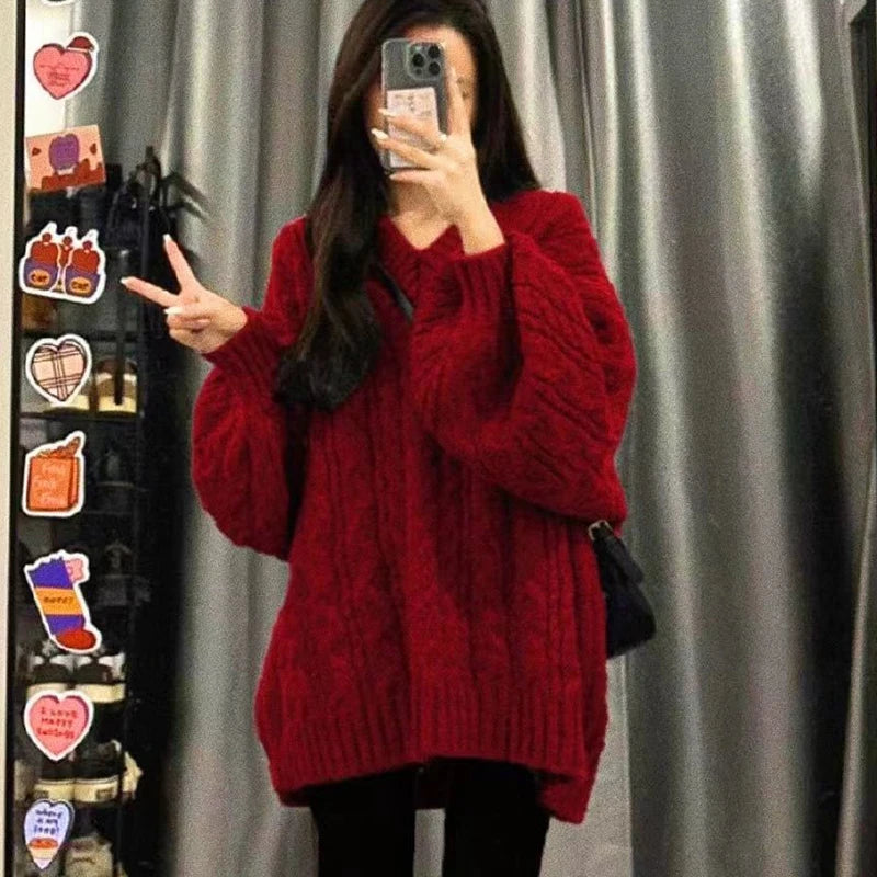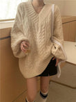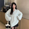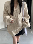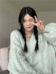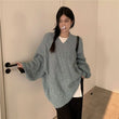 Harajuku Women Sweater Cute Oversized Knitted Pullover V Neck Sweater