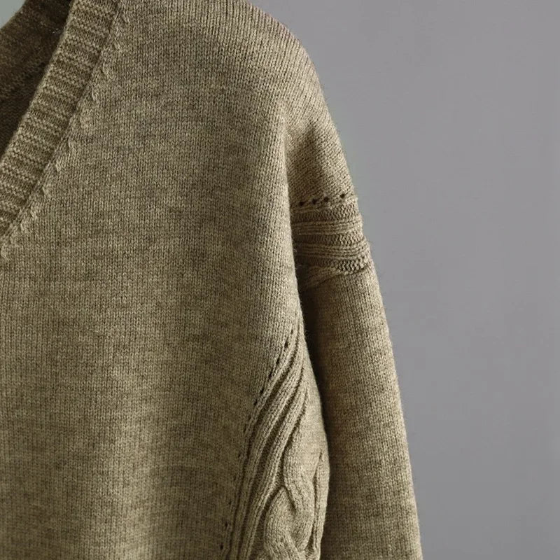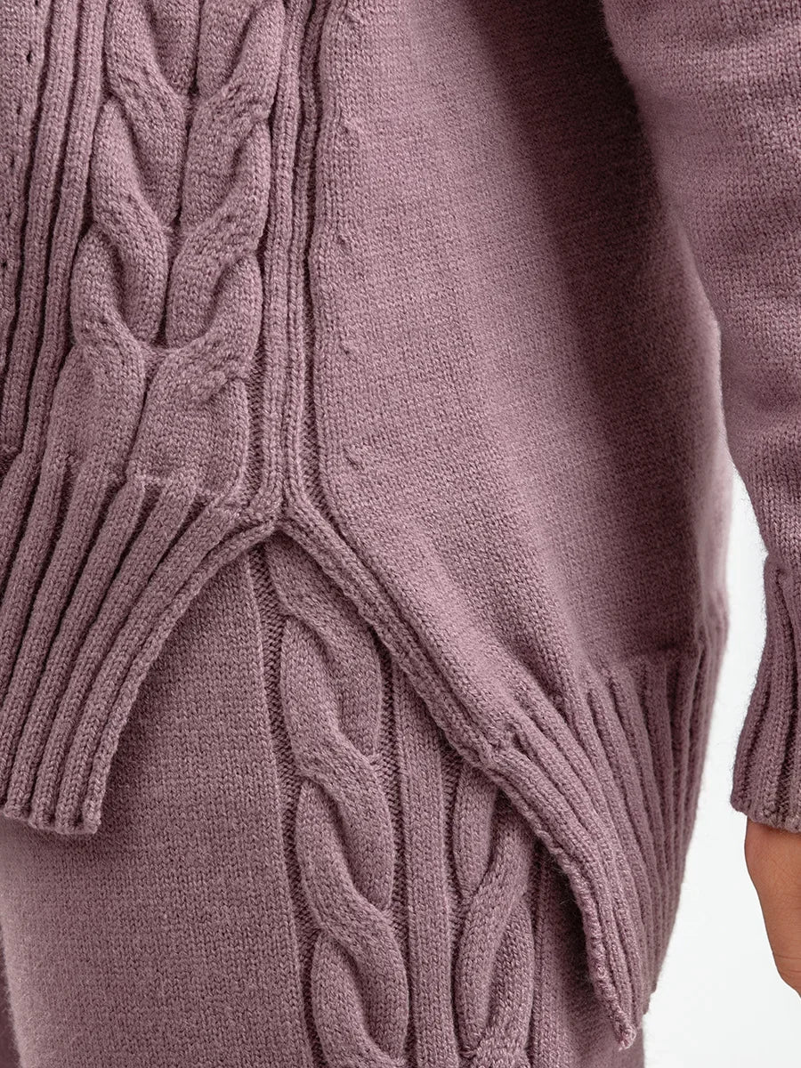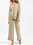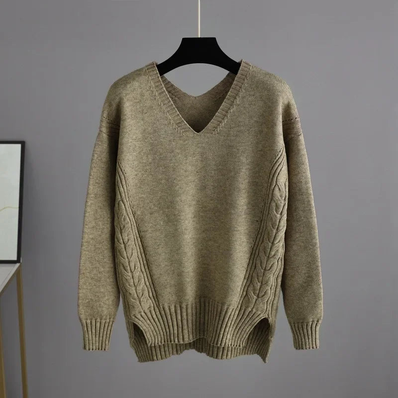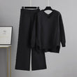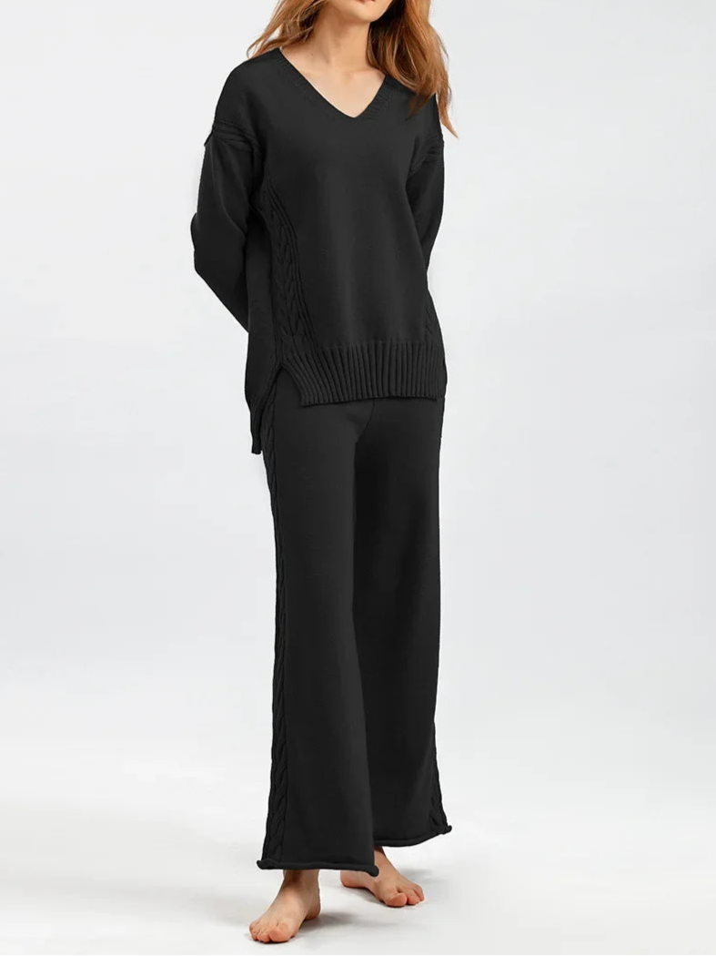 Thick Knit Sweater Set Women Tracksuit Solid Color V Neck Sweaters + Pant Two Piece Set
