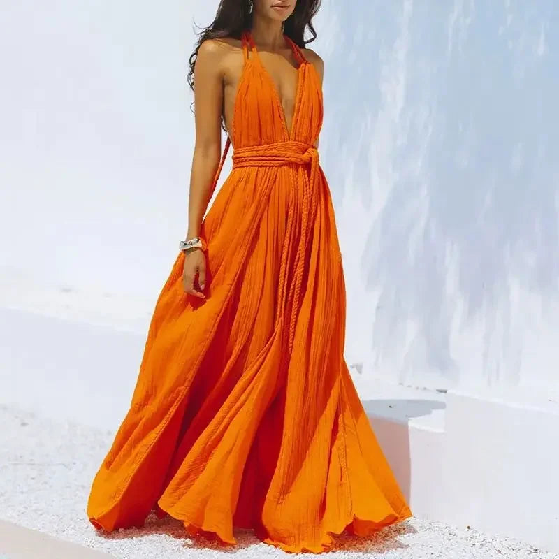 Backless Sexy V Neck Bohemian Long Dress Summer Maxi Sundress Vacation Outfit