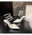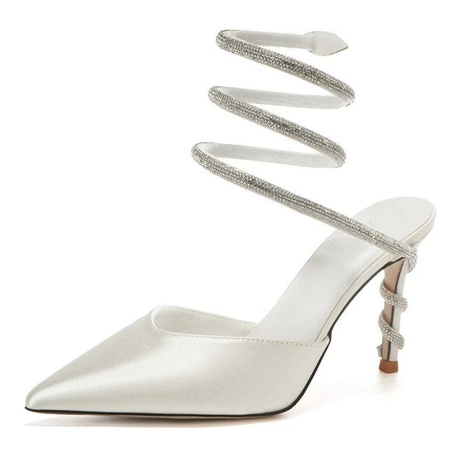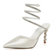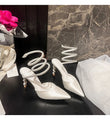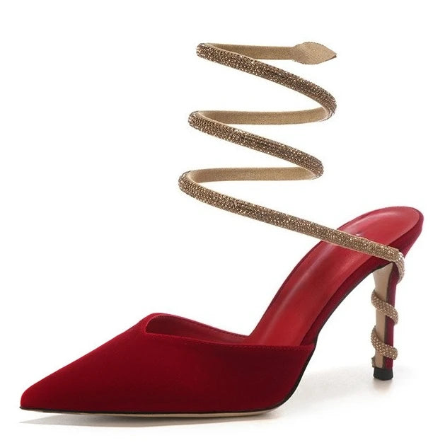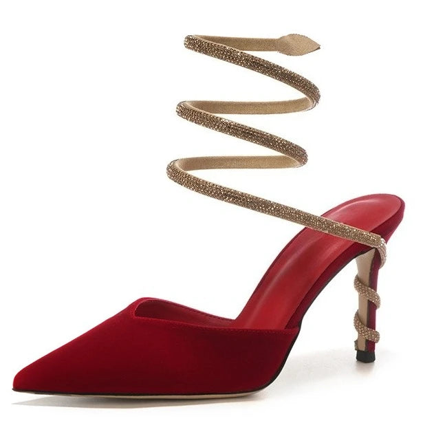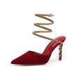 Women's Sexy Snake-Strap Rhinestone Suede Pointed High-heeled Wedding Shoes