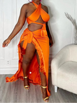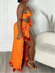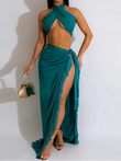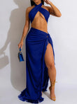 Chic Halter Neck Crop Top And High Slit Resort Wrap Skirt Set Two-Piece Outfits Resort Cover-Up Set