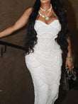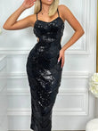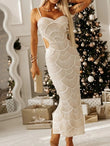 Women's Sequins Beaded Cut-Out Long Evening Dress Sexy Pearls Sequin Corset Dress