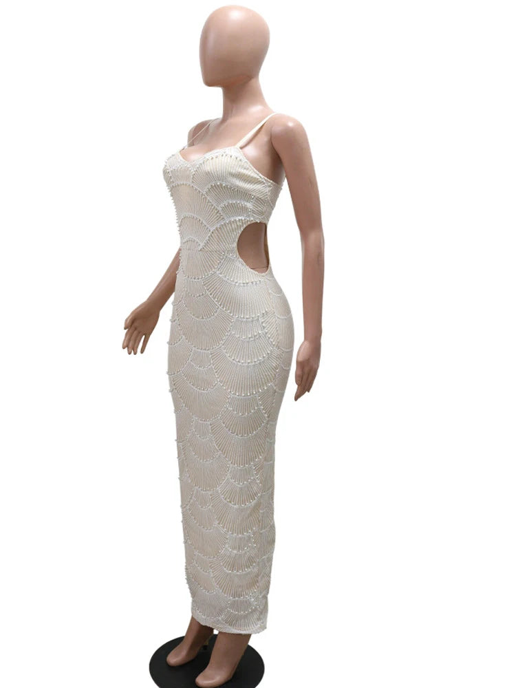 Gender: Women, Women's Sequins Beaded Cut-Out Long Dress
