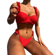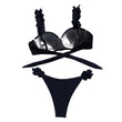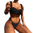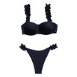 Black Red Push Up Bikinis Sets Ruffled Straps Swimwear Micro Thong Sexy Swimsuit Women Back Bow Bathing Suit