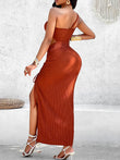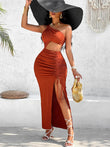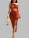 Women's Single Shoulder Hollow Out Drawstring Split Dress