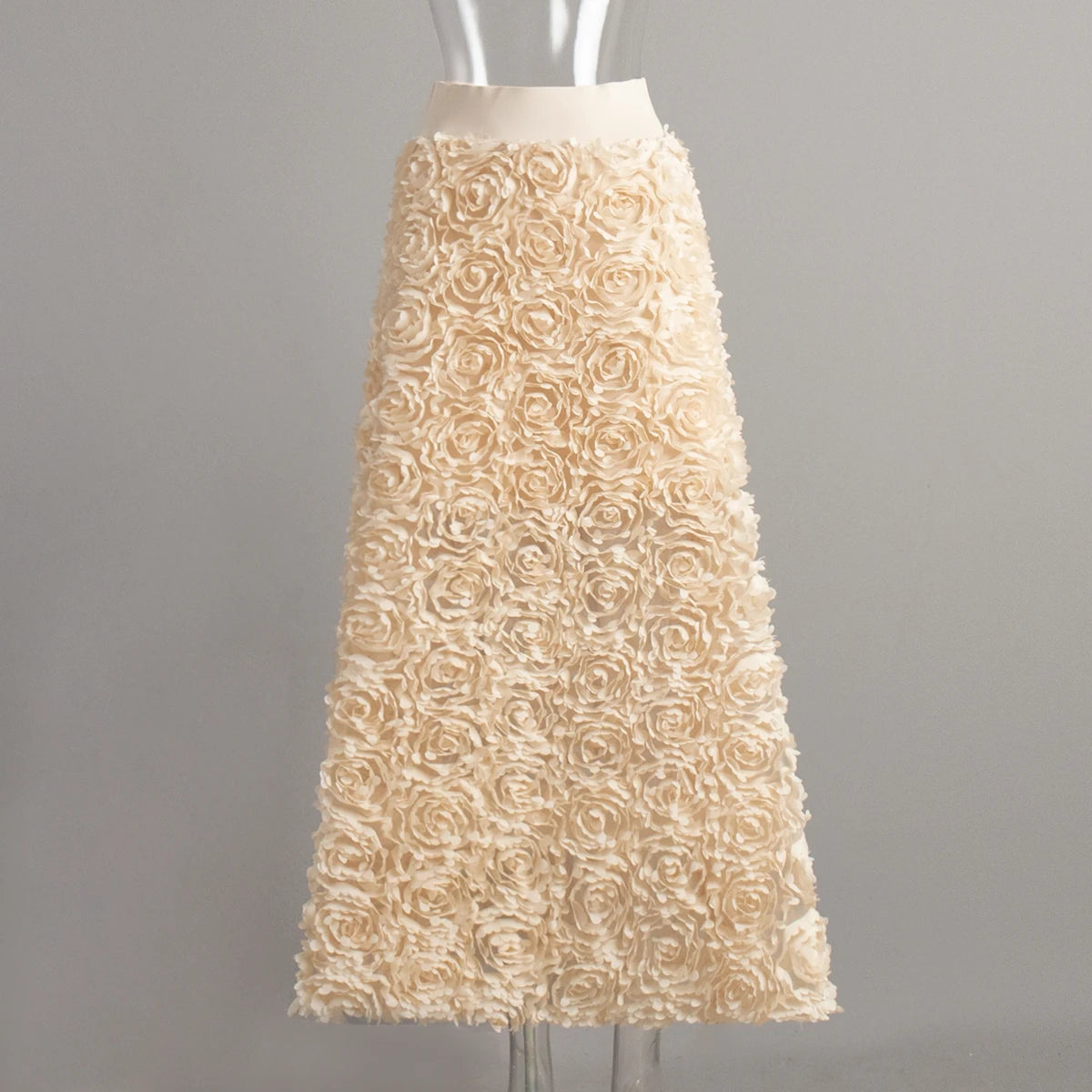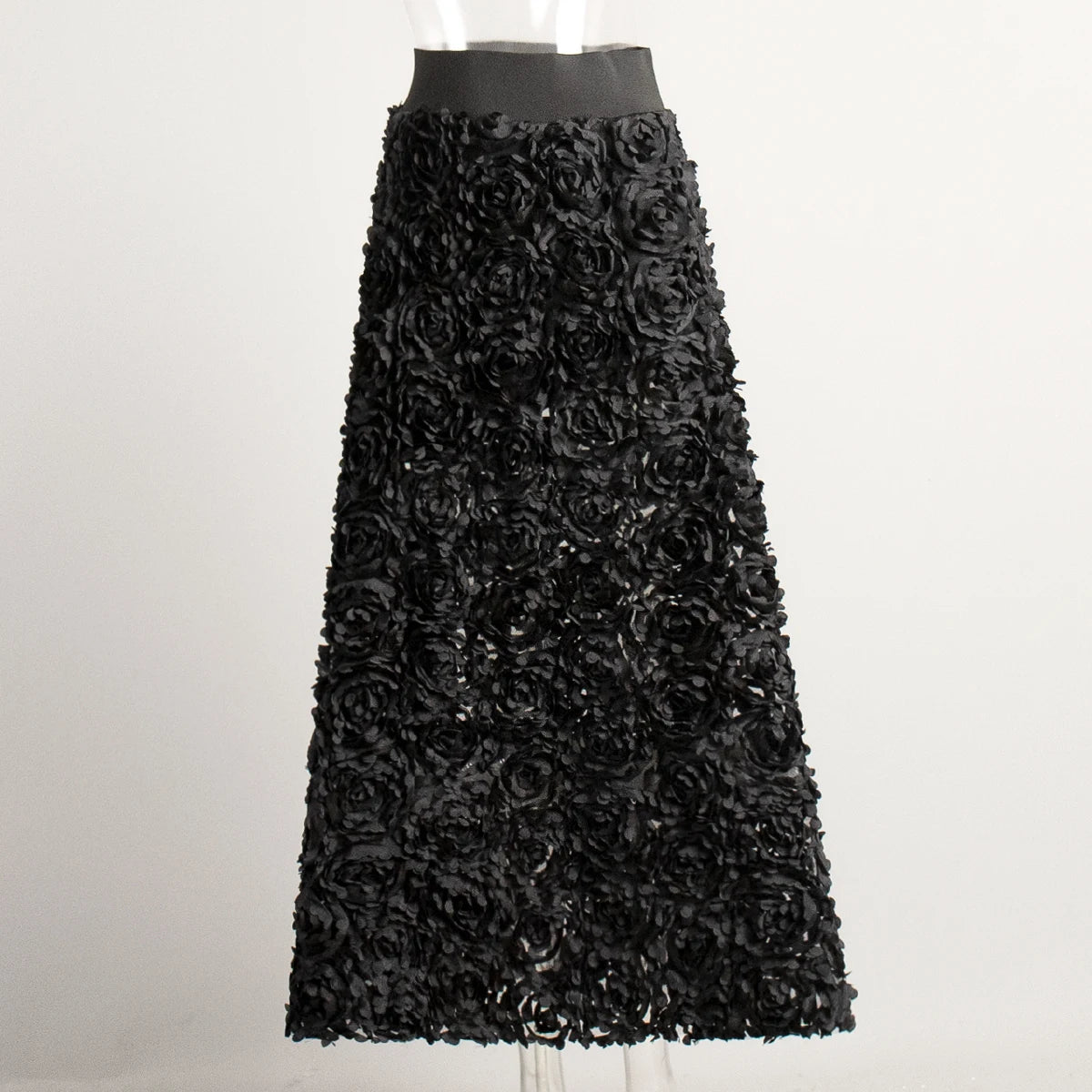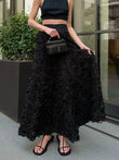 Long Petal Women's Design Inspired Evening High Waisted Black Red Tulle Maxi Skirt
