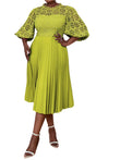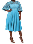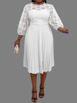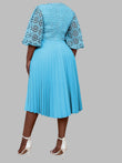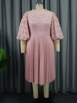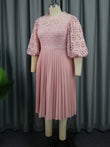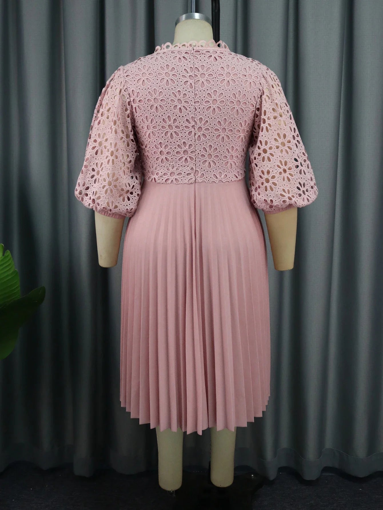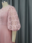 Chic Women Lace Party Dress Half Lantern Sleeve Hollow Out Elegant Pleated A-Line Gown Evening Birthday Dress