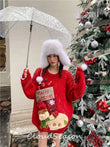 Christmas Sweater Loose New Lazy Thick Sweater Three-dimensional Cartoon Red Sweater