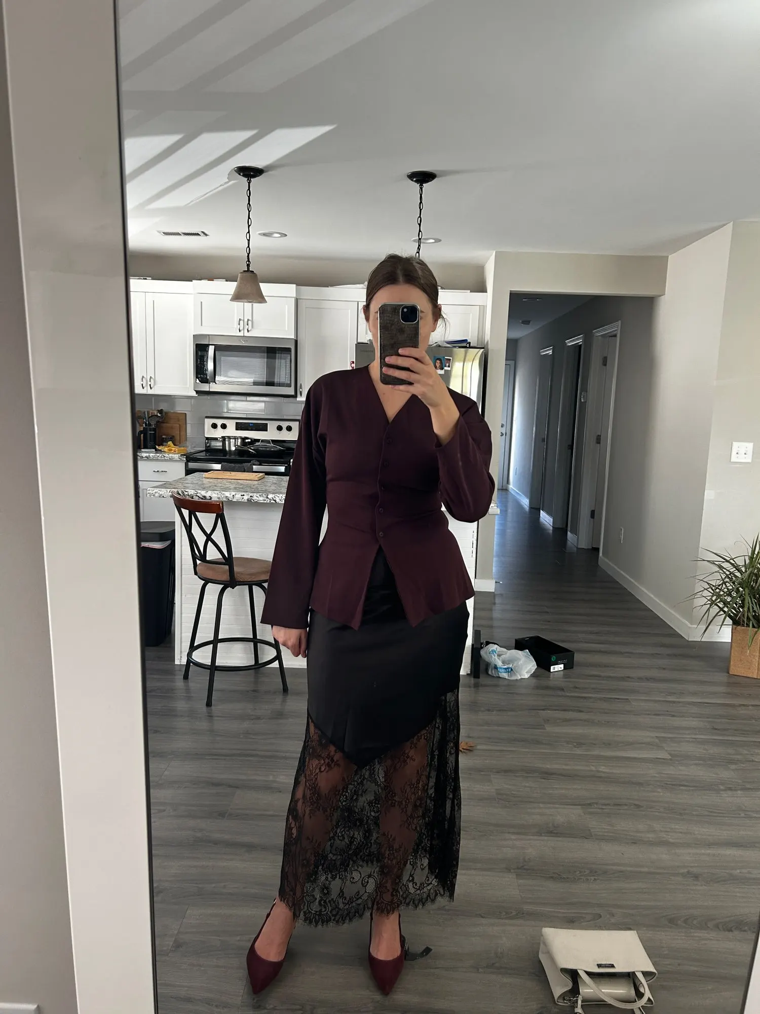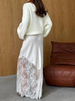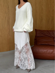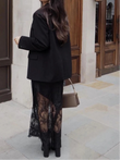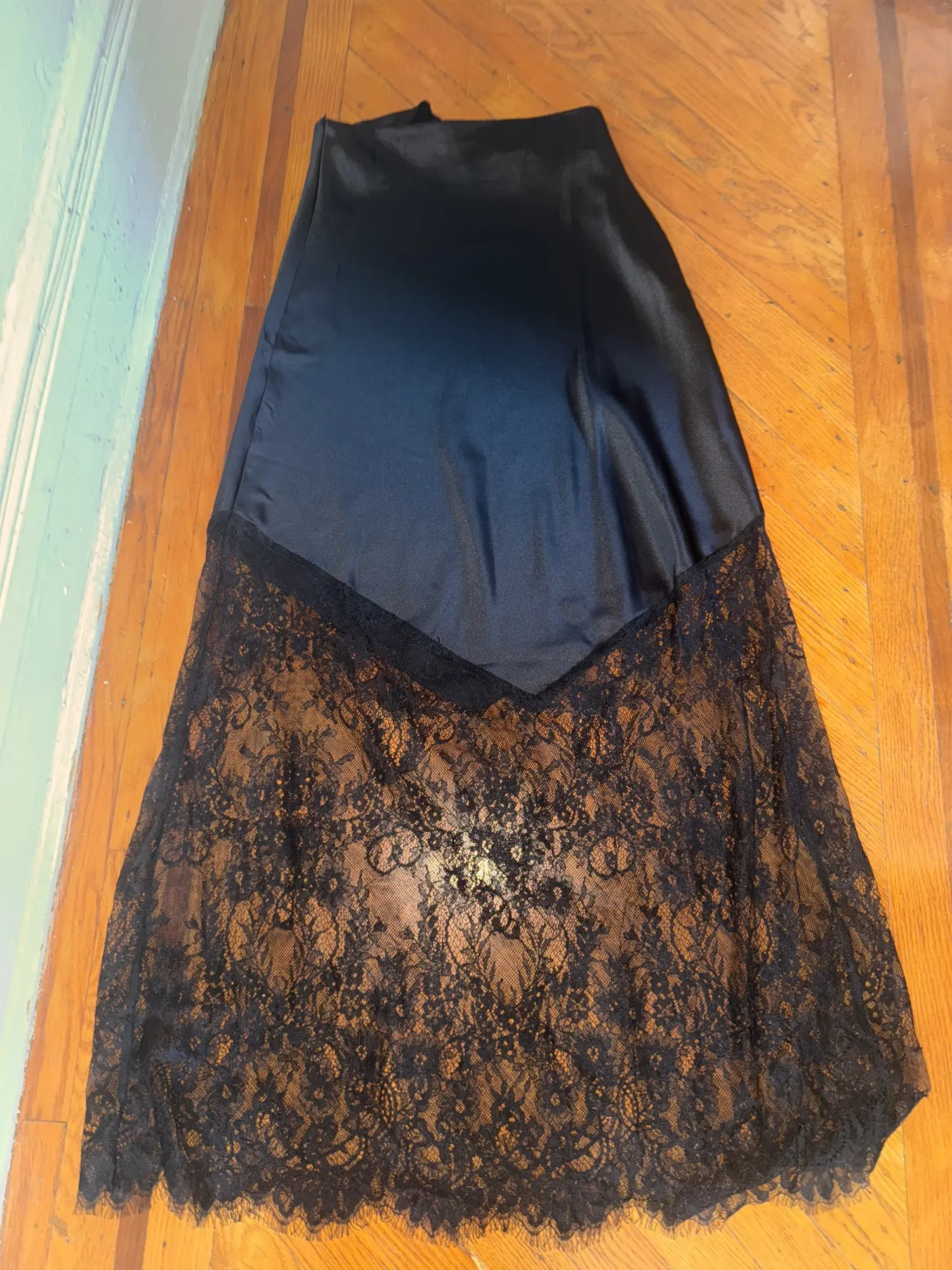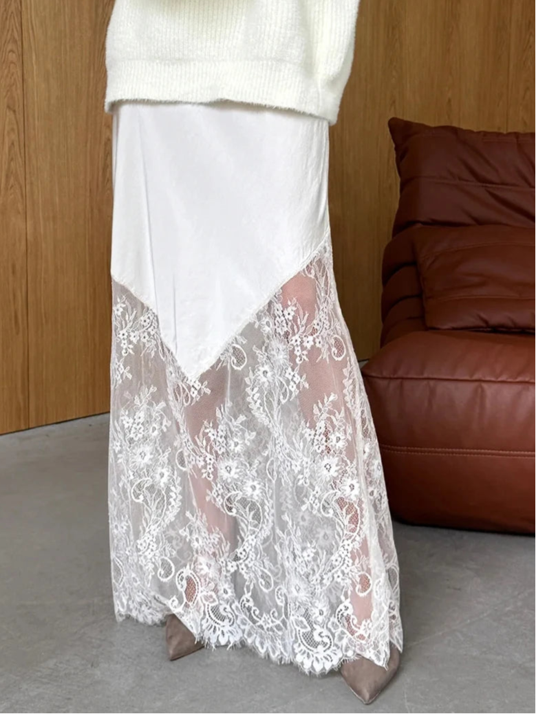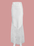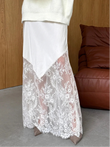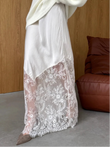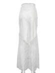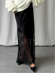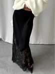 Loose Black Satin Lace Hem Skirt Casual High Waist Ankle Length Skirt