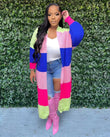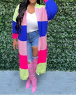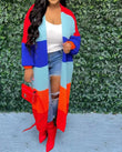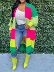 Elegant Women Knit Ribbed Cardigan Patchwork Long Sleeve Open Stitch Thick Sweater