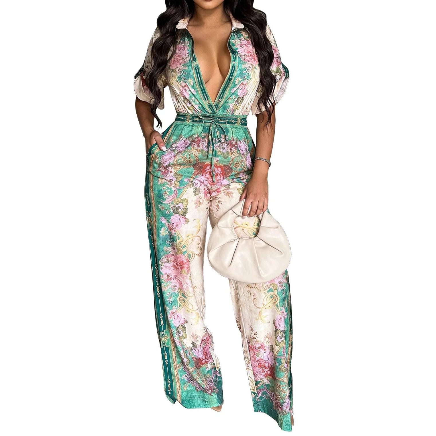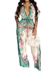 Women Floral Printed Vintage Style Wide Leg Jumpsuits Playsuit One Piece Suit Romper