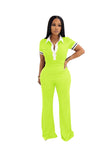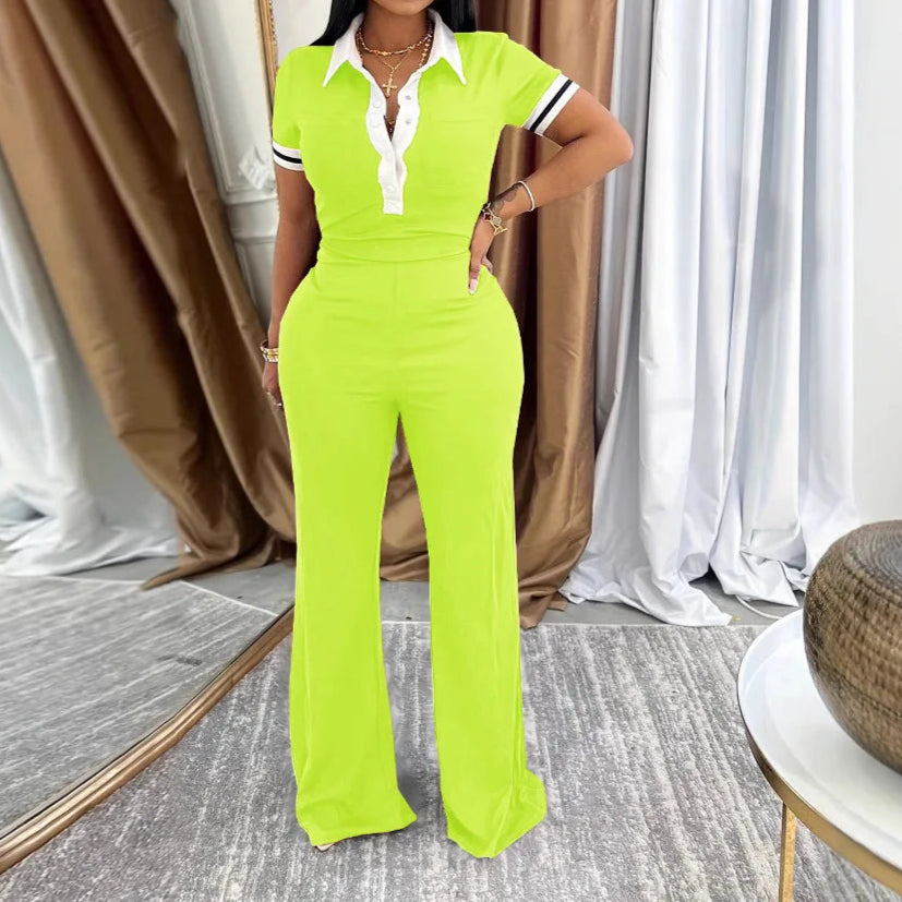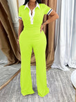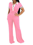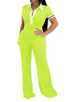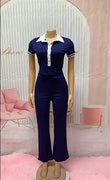 Women's Set Short Sleeve Ribbon Tops + Wide Leg Pants