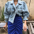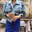 Denim Coats Jackets Women Puff Long Sleeve Y2k Clothes Cropped Jacket