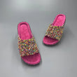 Rhinestone Embellished Women's Slippers - Durable PVC Soles Flat Slippers