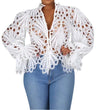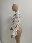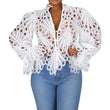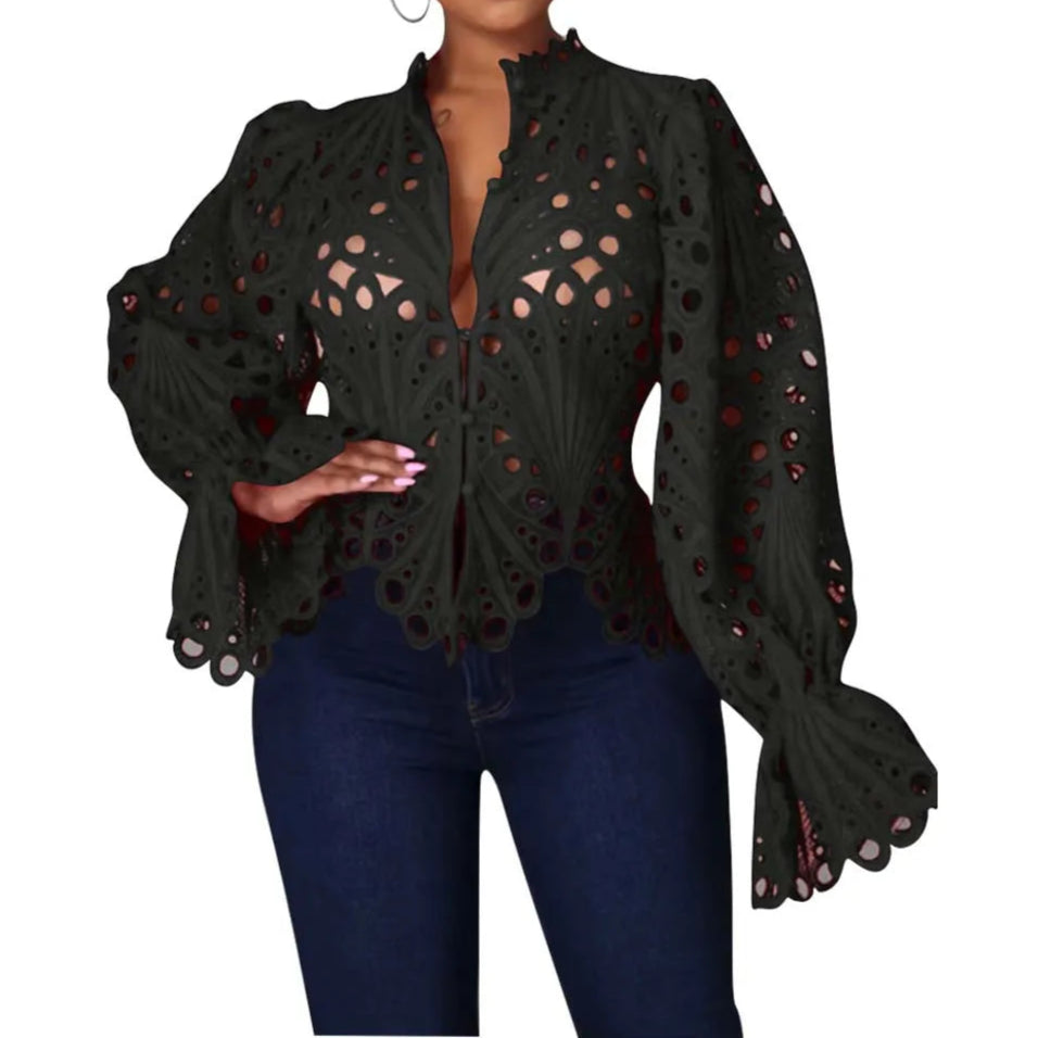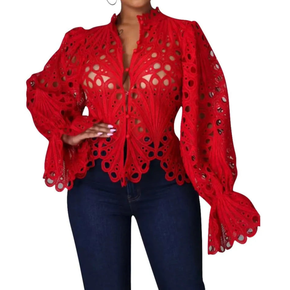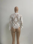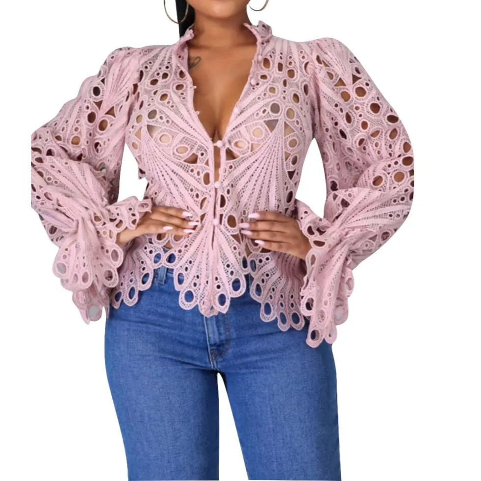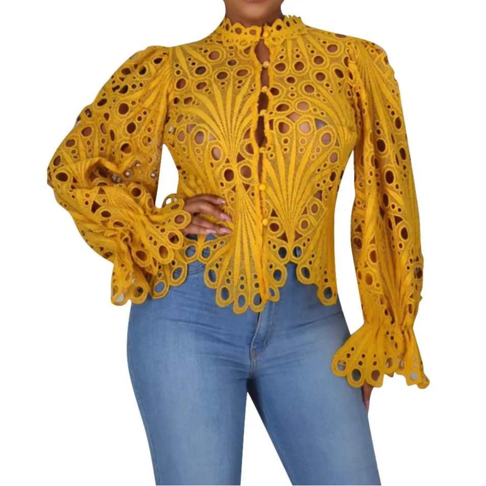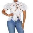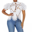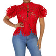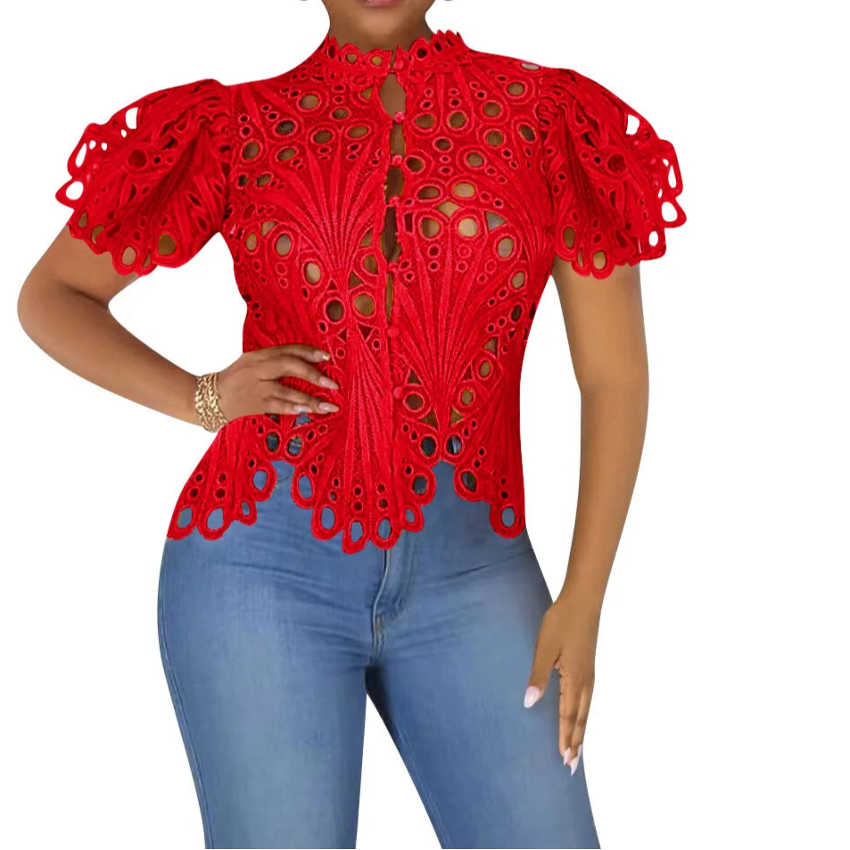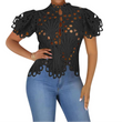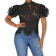 Summer Shirts For Women Elegant Short Sleeve Hollow Out Lace Sheer See Through Top Blouse