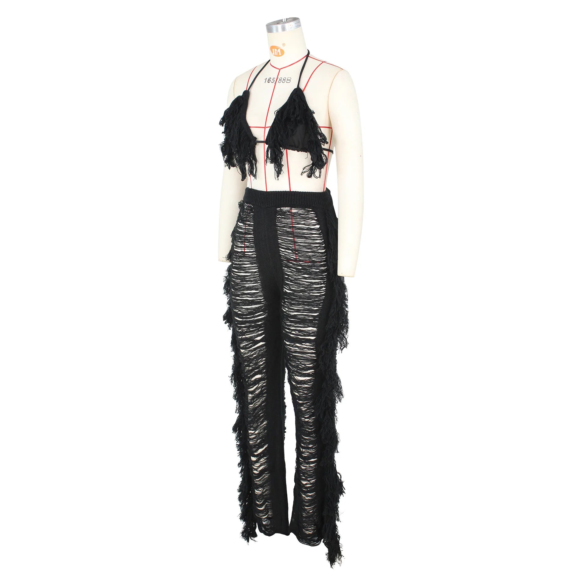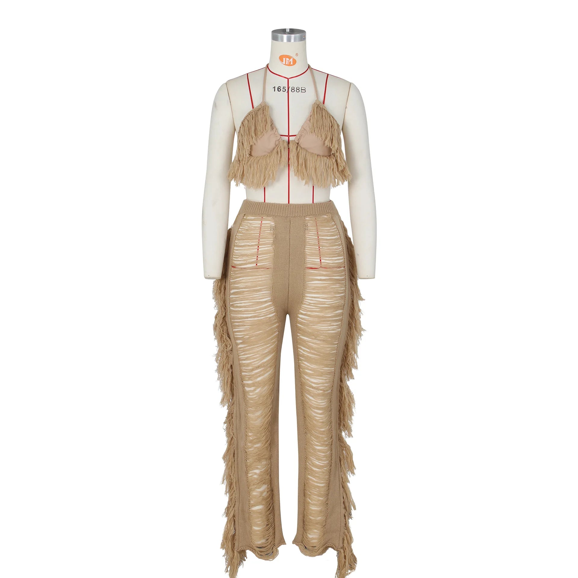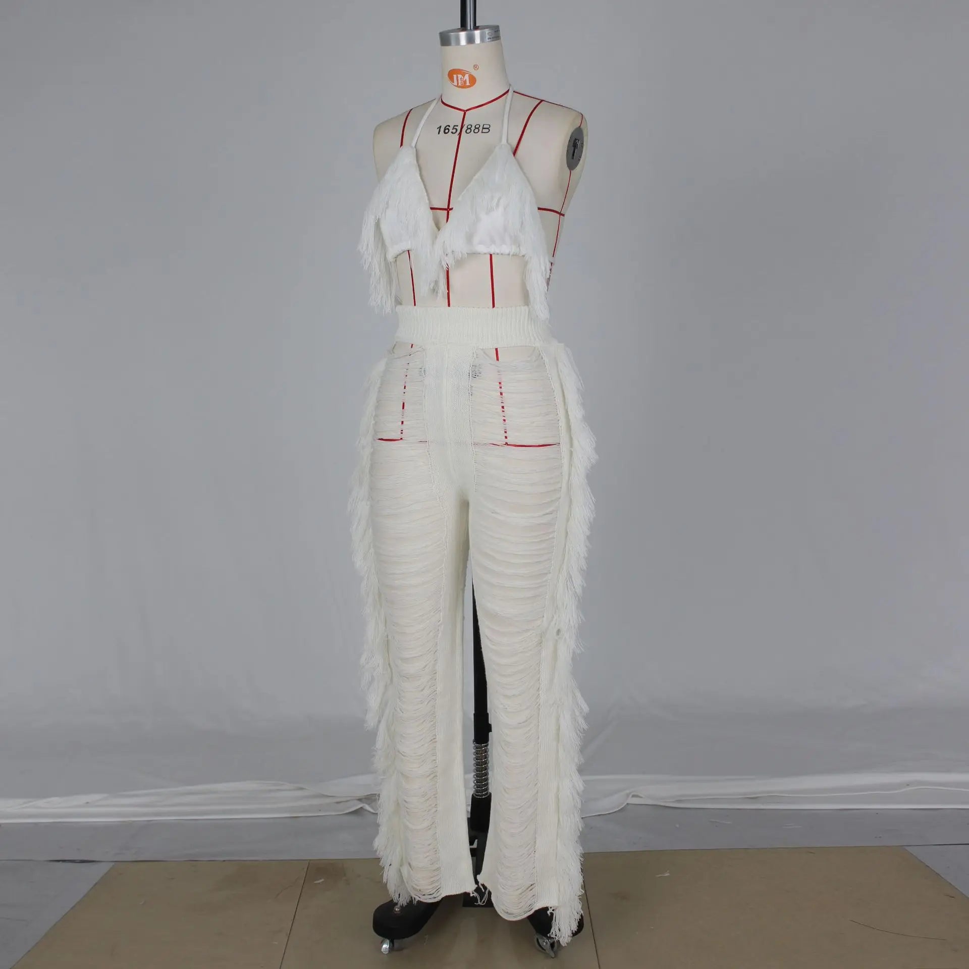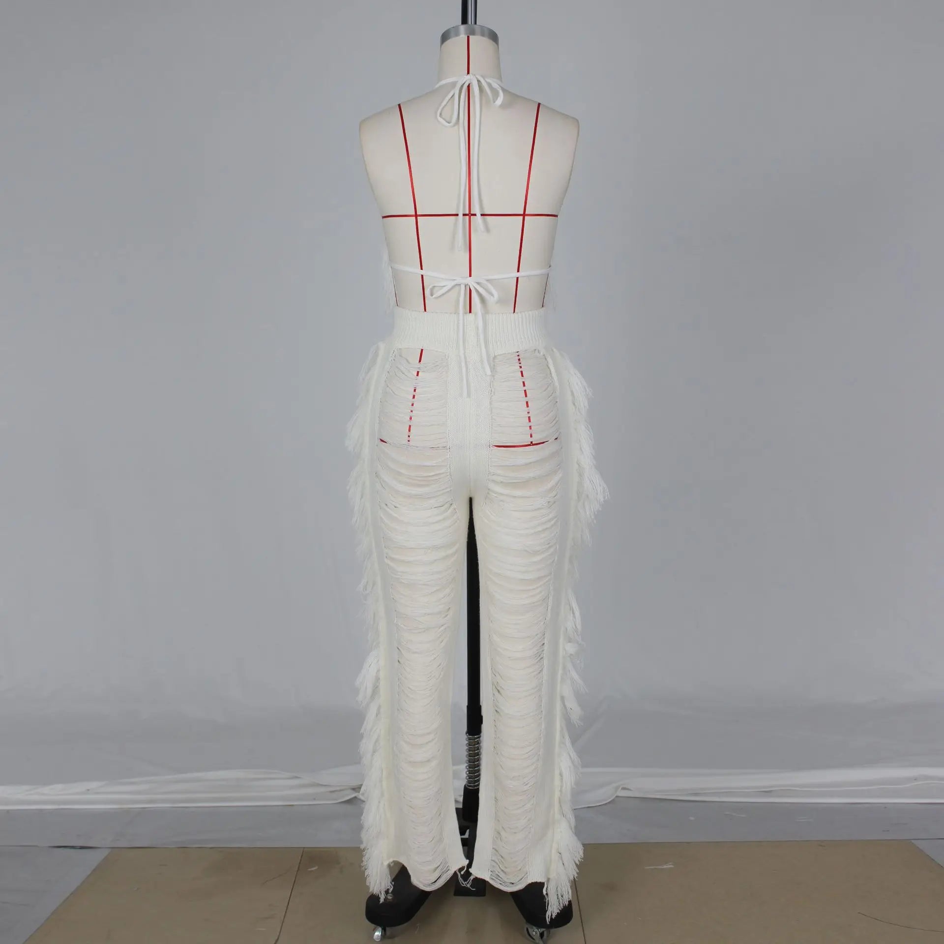 Tassel Knitted Pants Two Piece Set Resort Outfit Vacation Outfit Beach Cover Up