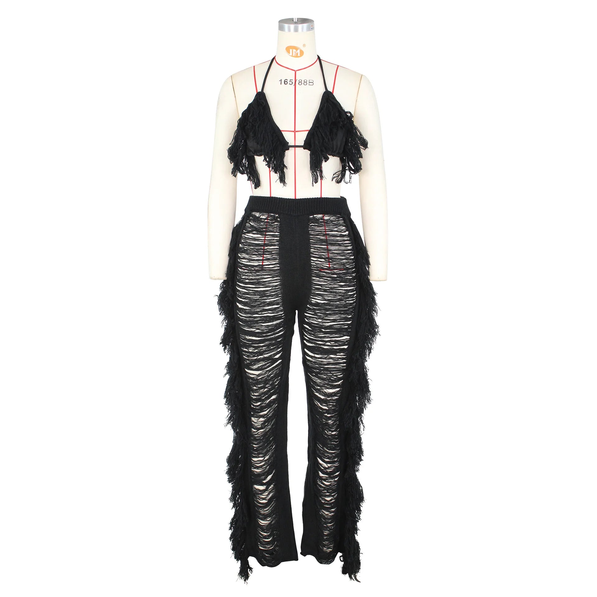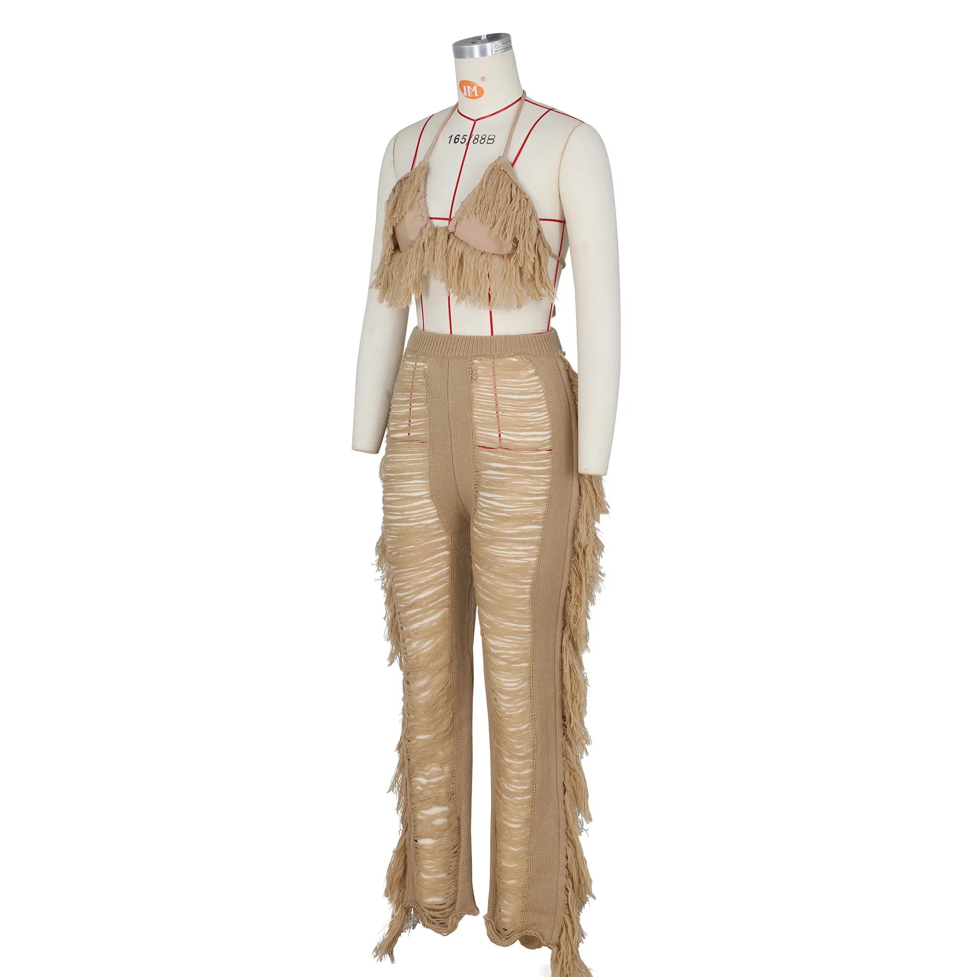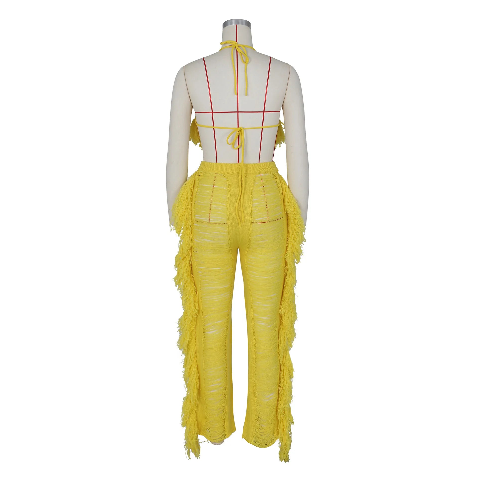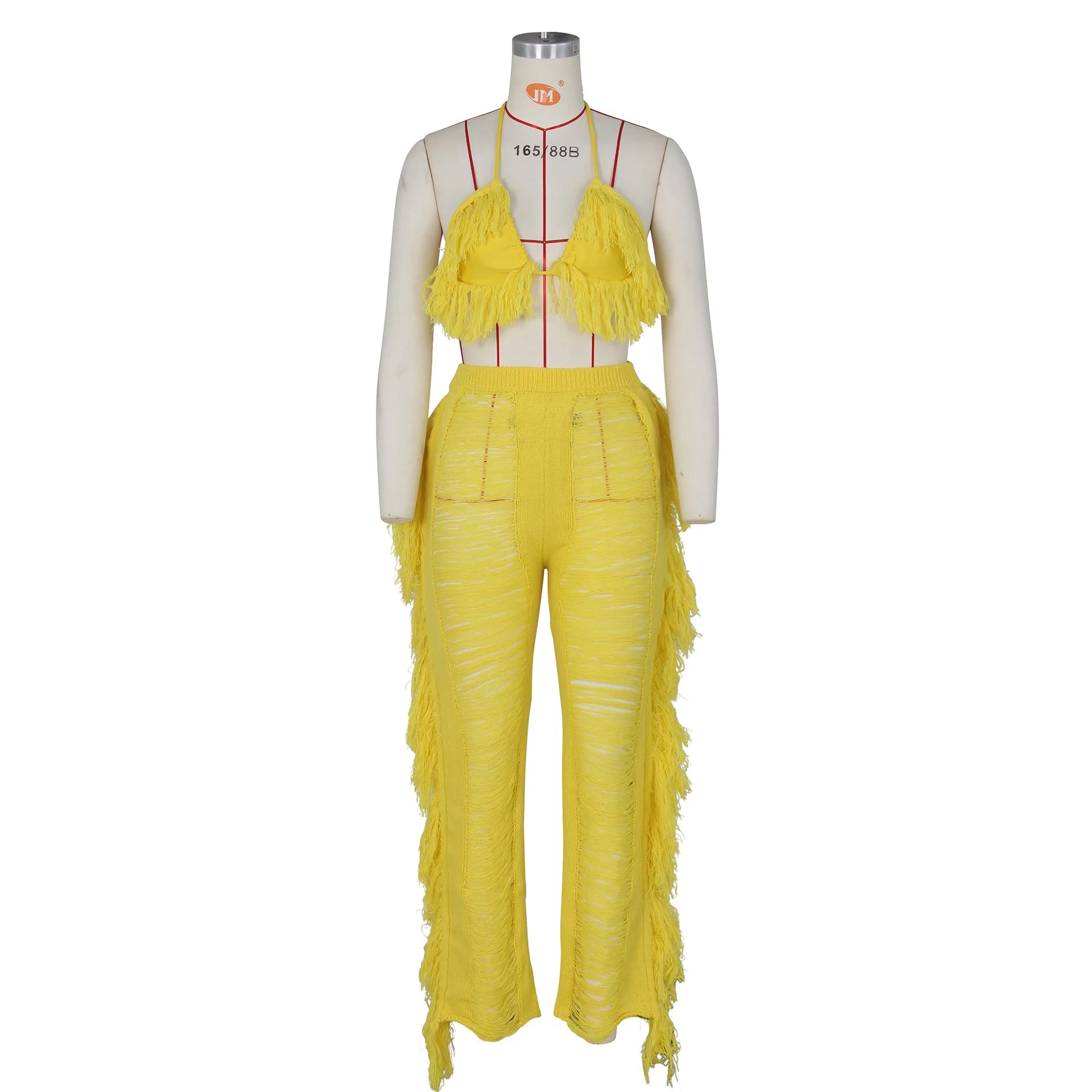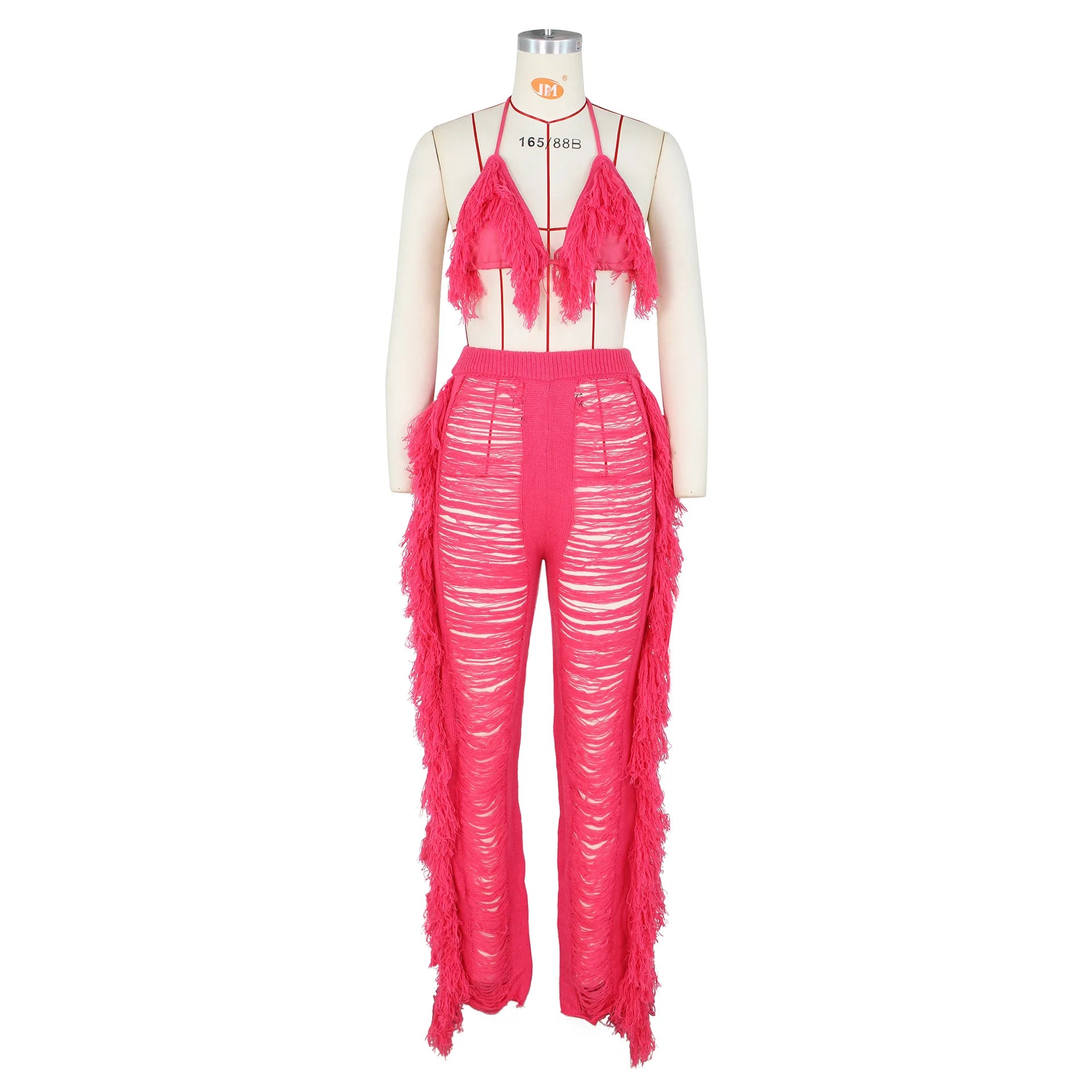 Tassel Knitted Pants Two Piece Set Resort Outfit Vacation Outfit Beach Cover Up