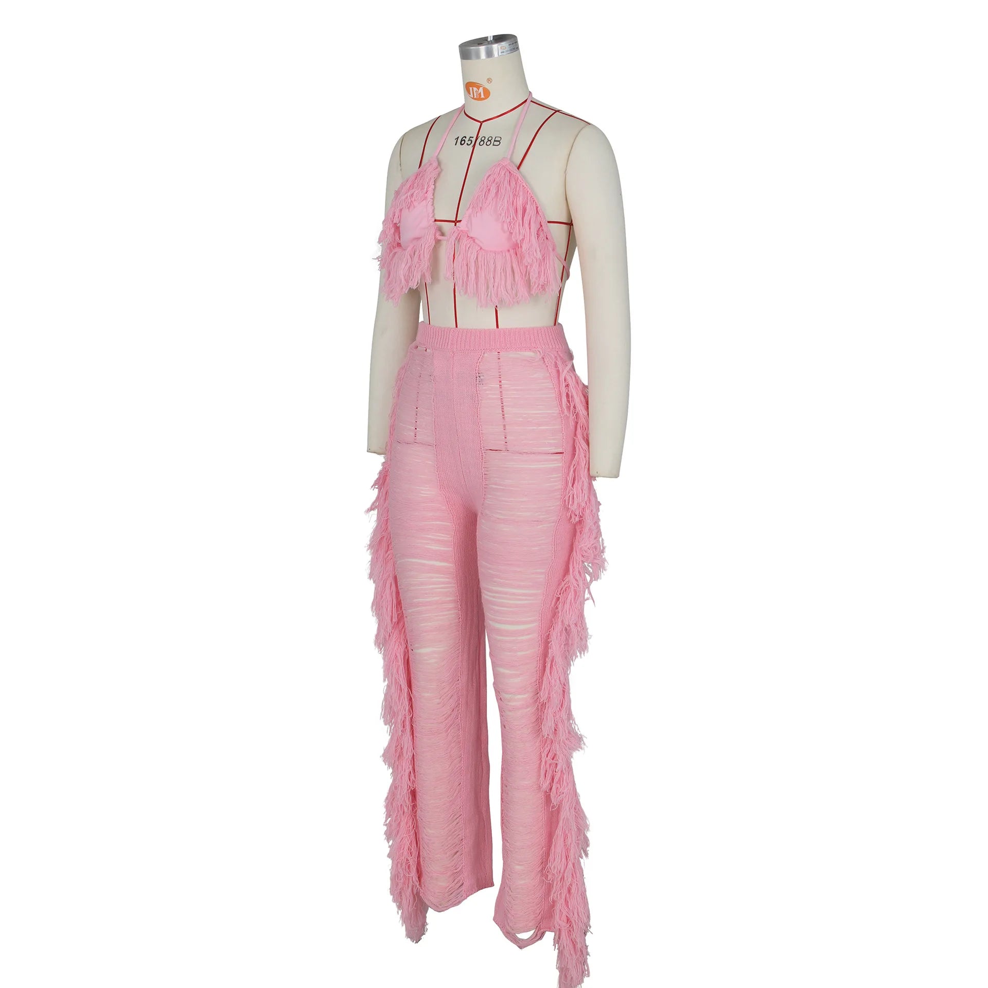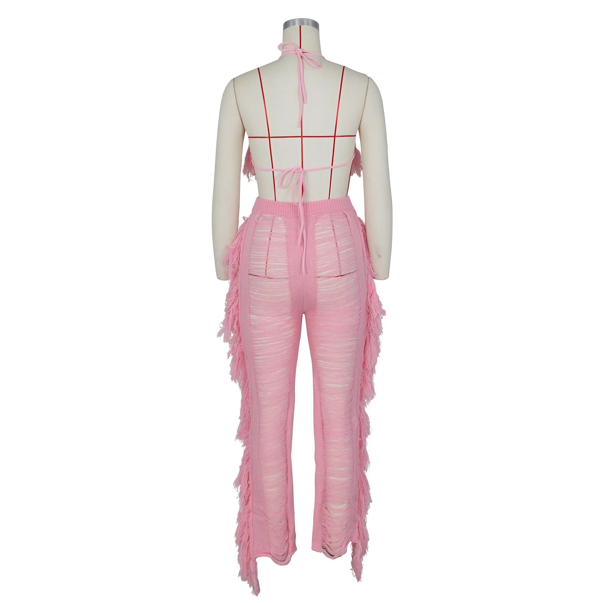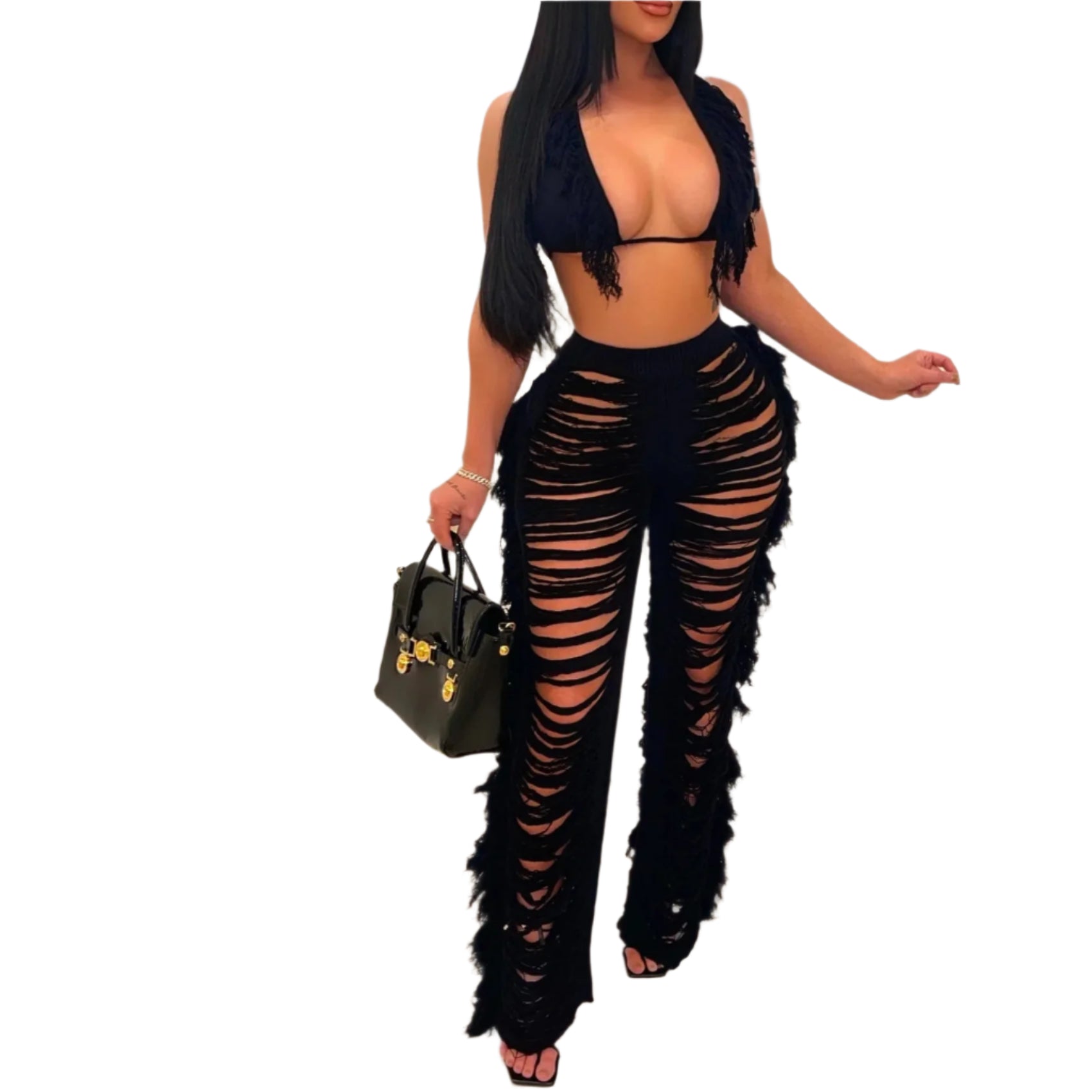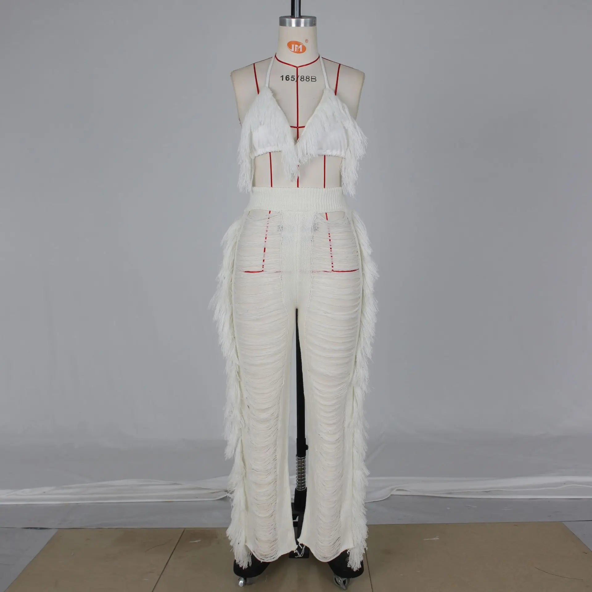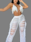 Tassel Knitted Pants Two Piece Set Resort Outfit Vacation Outfit Beach Cover Up