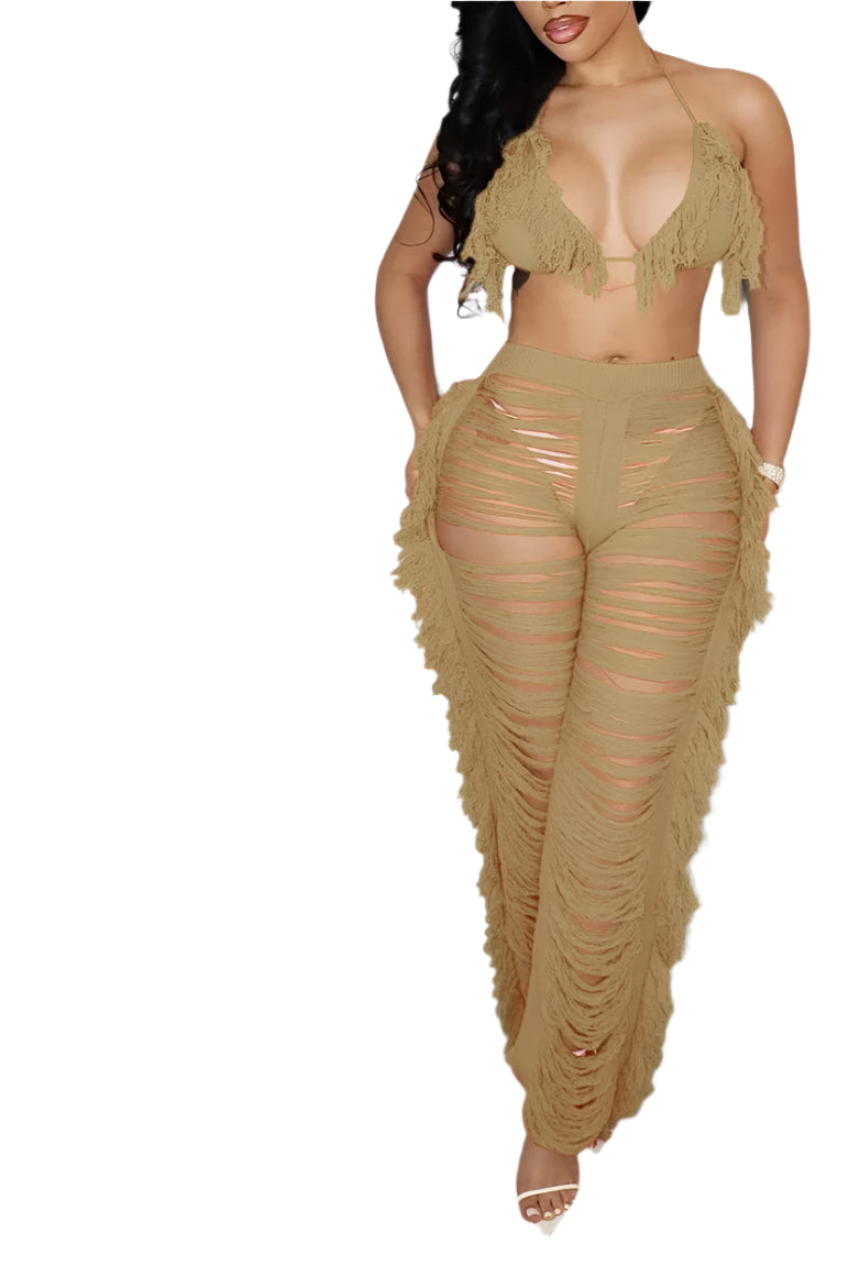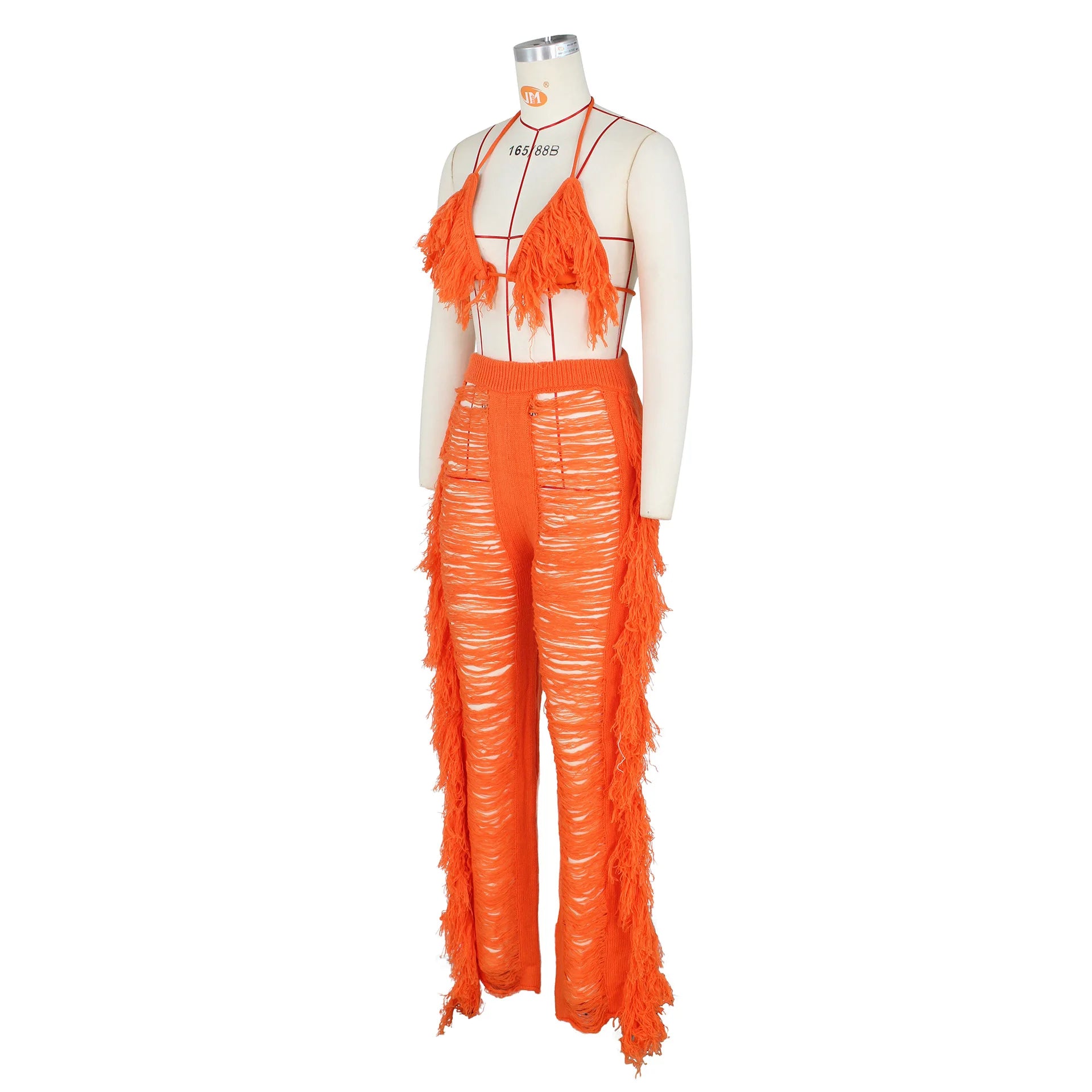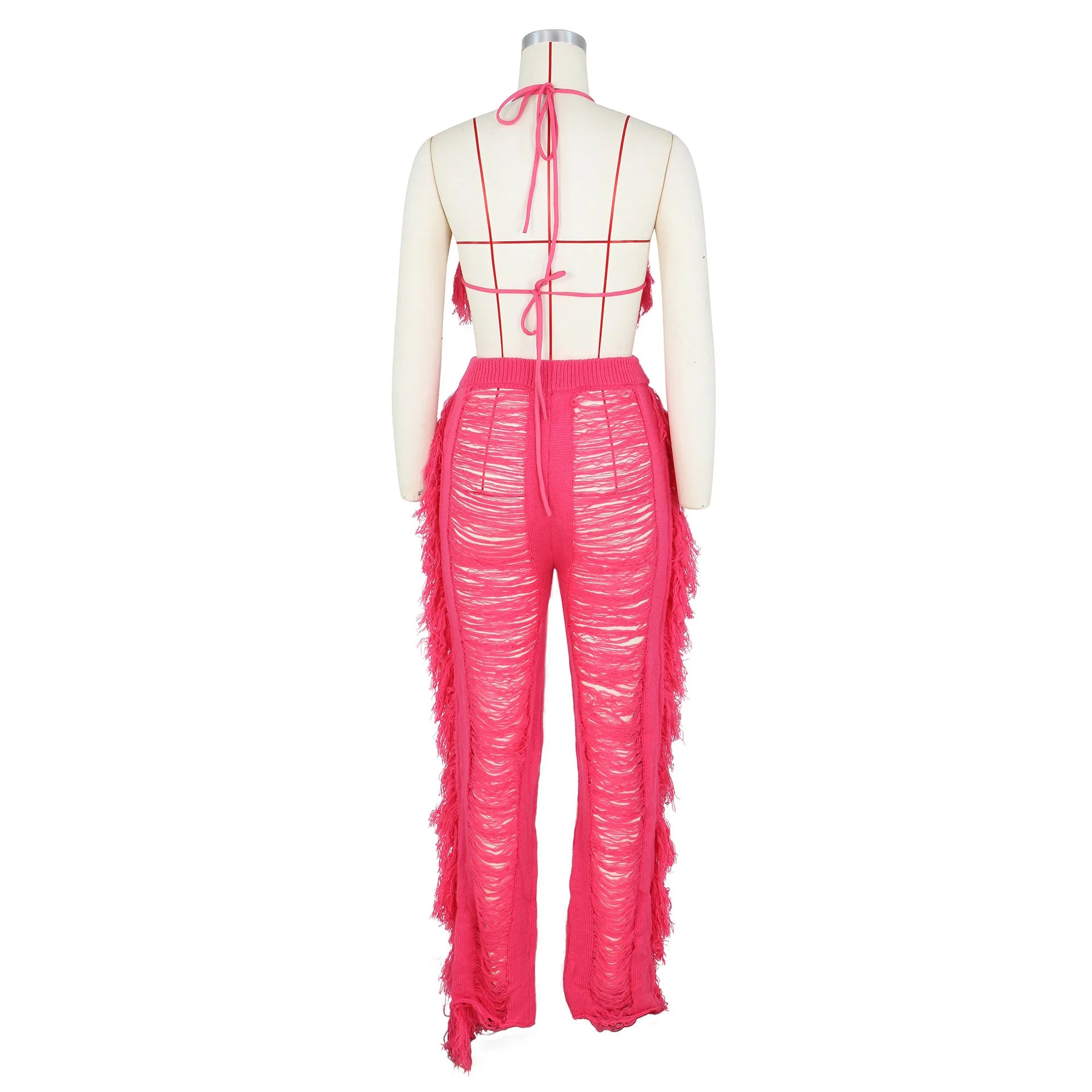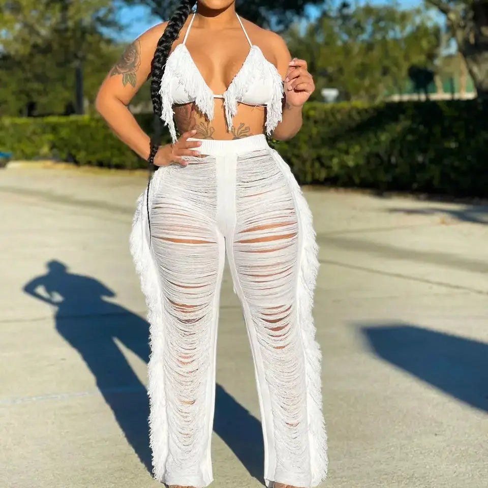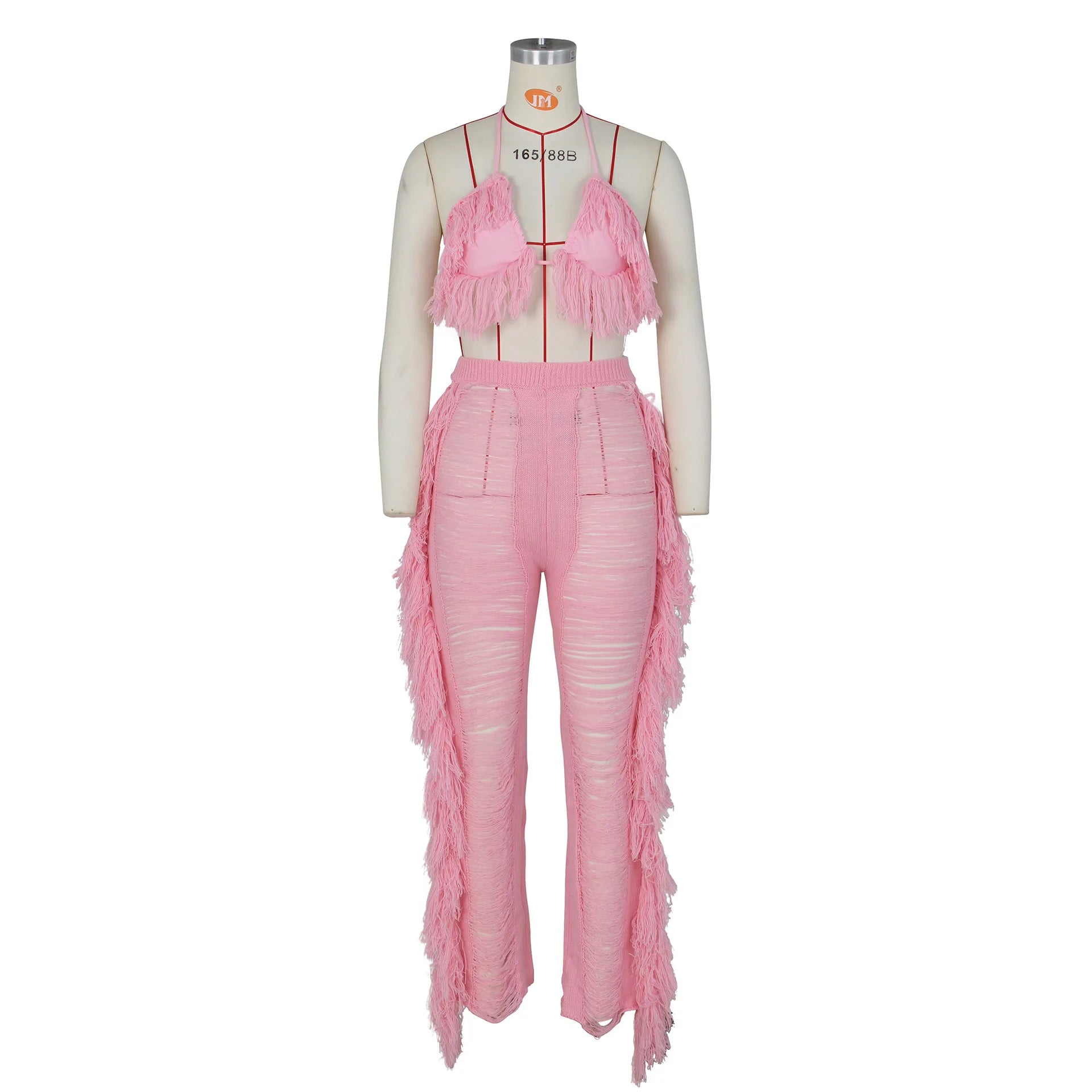 Tassel Knitted Pants Two Piece Set Resort Outfit Vacation Outfit Beach Cover Up