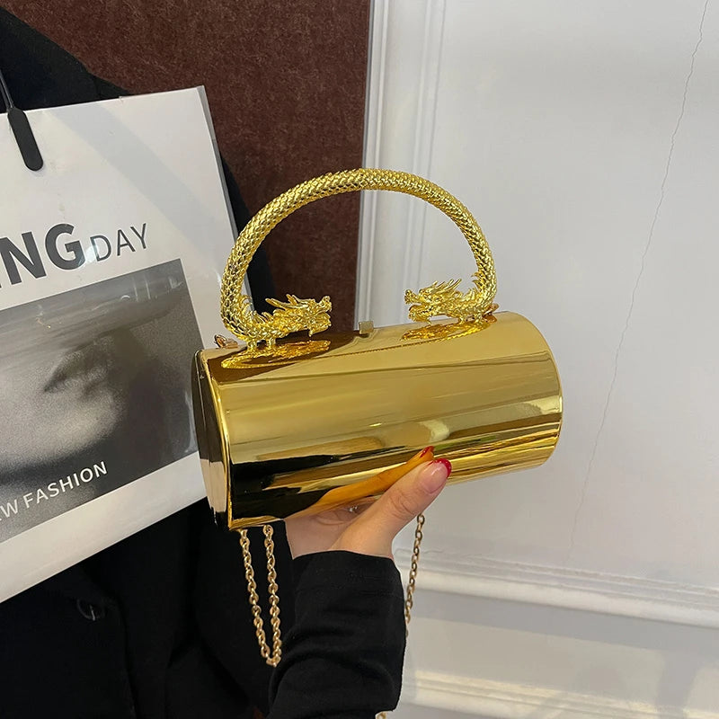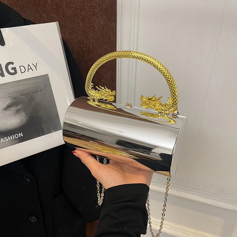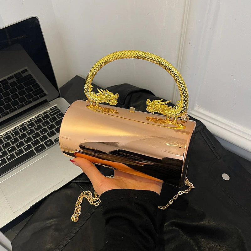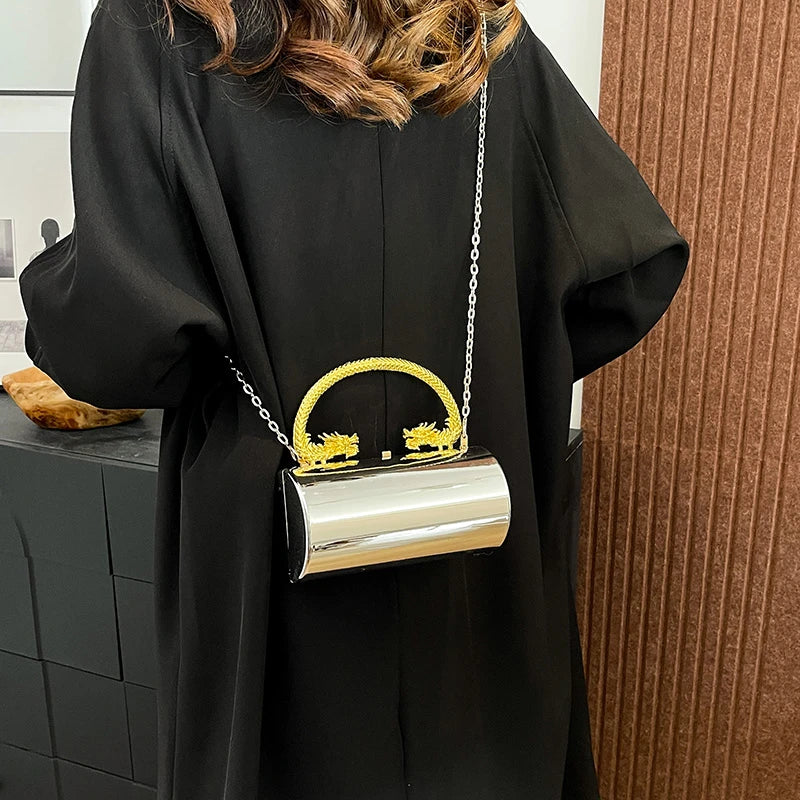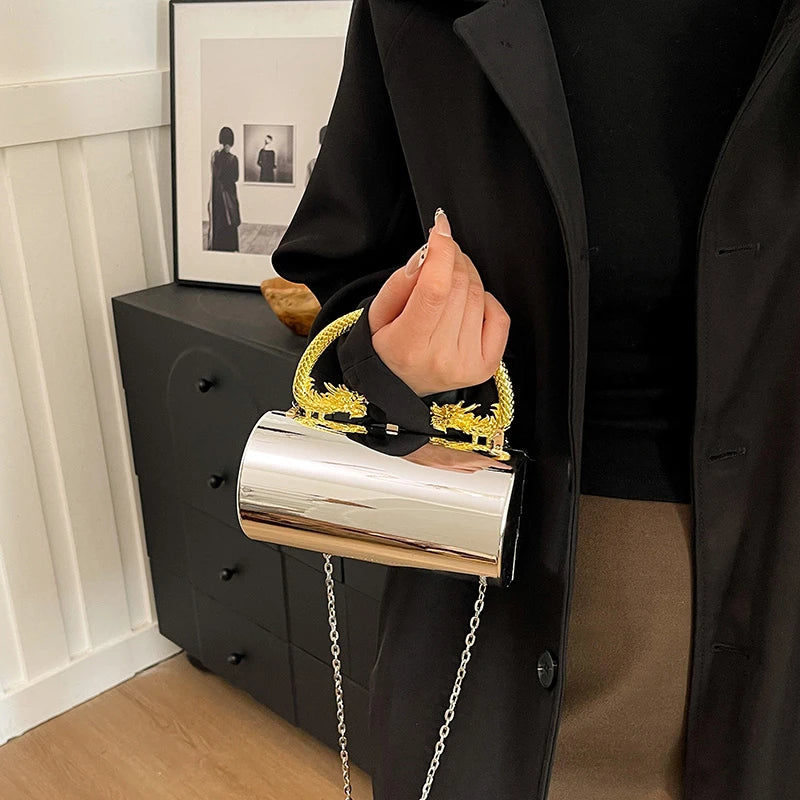 Acrylic Clutch Bag Gold Silver Women Evening Shiny Metal Shoulder Crossbody Bags