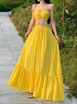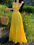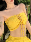 Dopamine Seaside Travel Wear Vacation Beach Skirt Set Tube Top Top Women's Belt Chest Pad Two-piece Skirt Set
