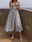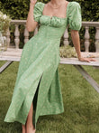 Summer Women Puff Sleeve Floral Printed Dress, Long Dresses, Maxi Dress
