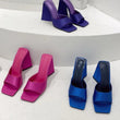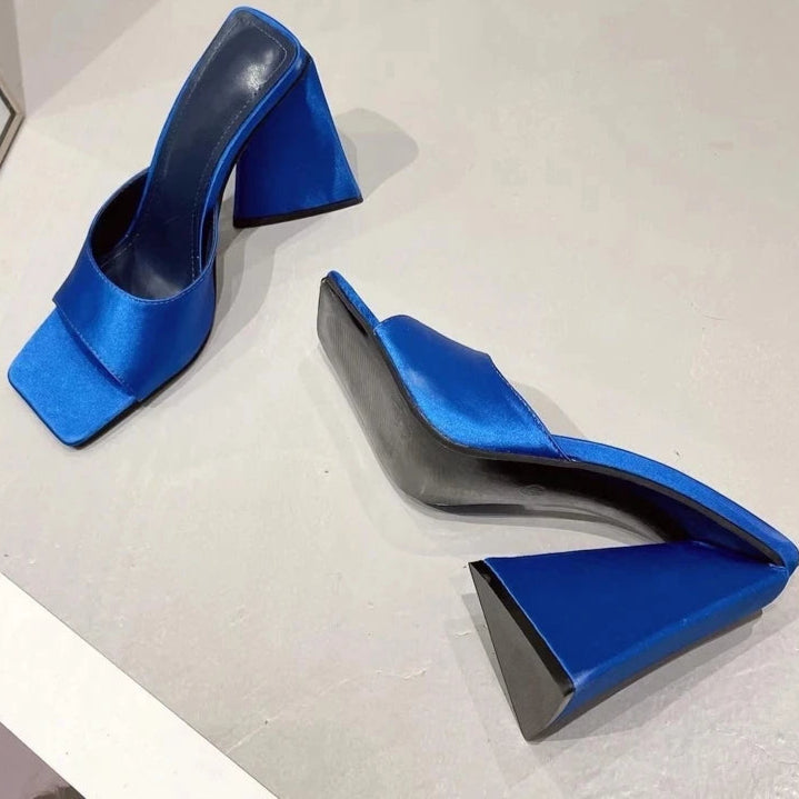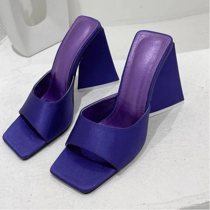 Silk Triangle Square Heels Heel Woman Slippers Sexy Street Party Square Toe Heels