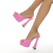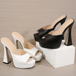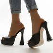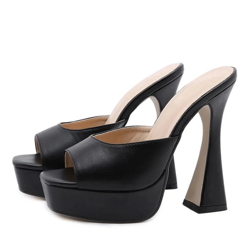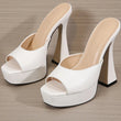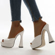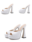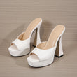 Women Platform Slippers Slides Summer Peep Toe Square Heels 13cm Gladiator Sandals