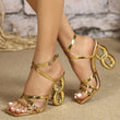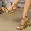 Women's Gold High Heels Sandals Ankle Buckle Strap Ladies Shoes