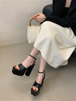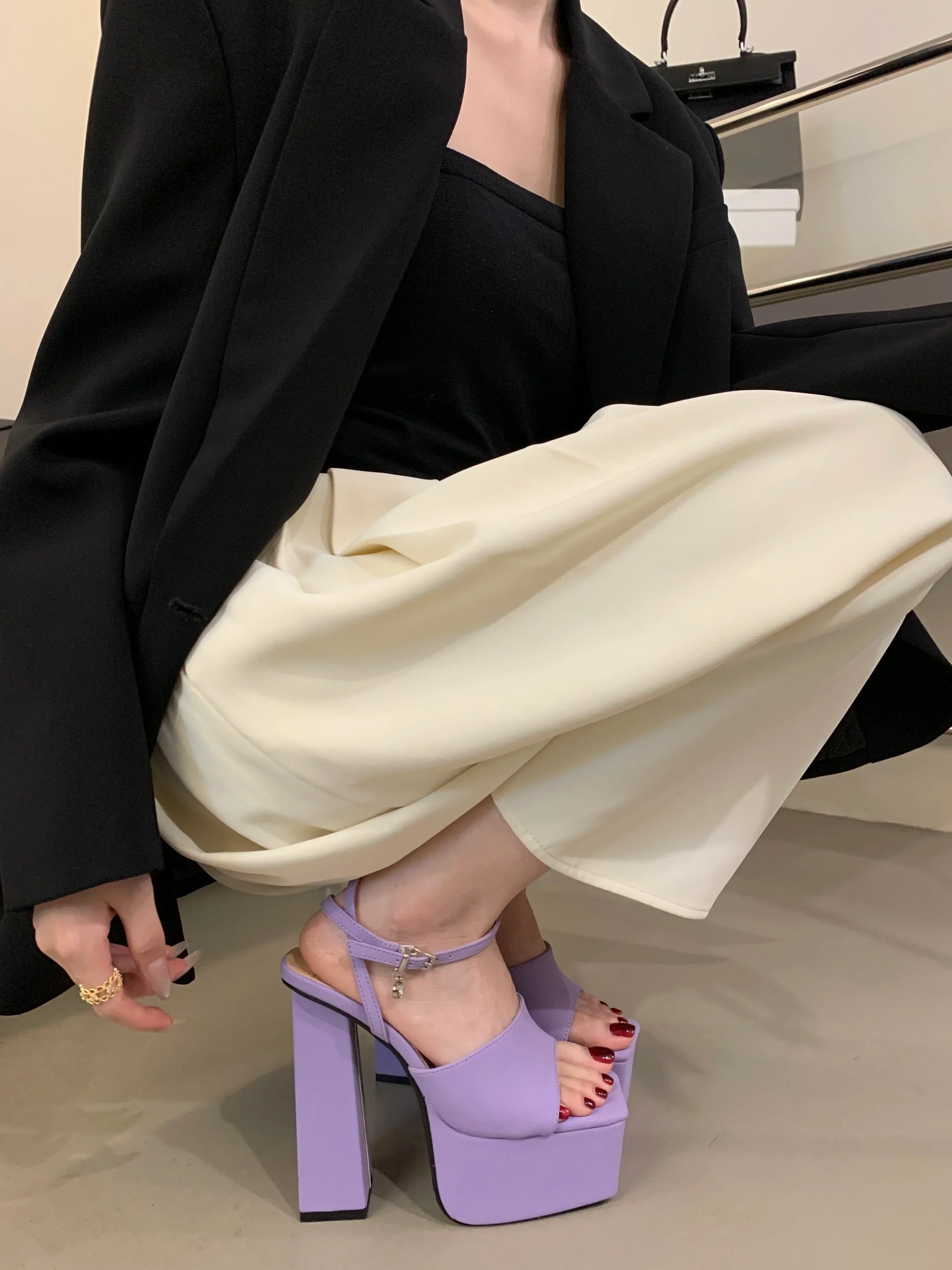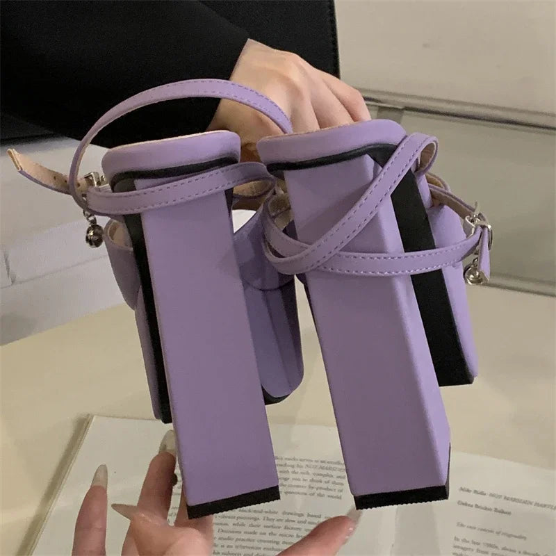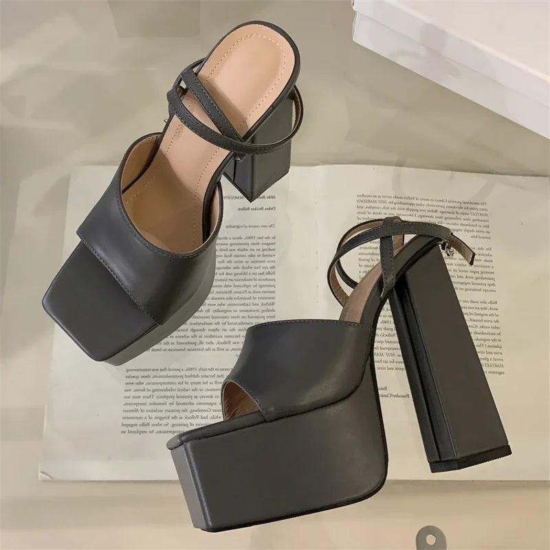 Chunky Platform Buckle Strap Sandals Women Square Toe Nightclub Party High Heels Shoes