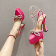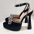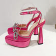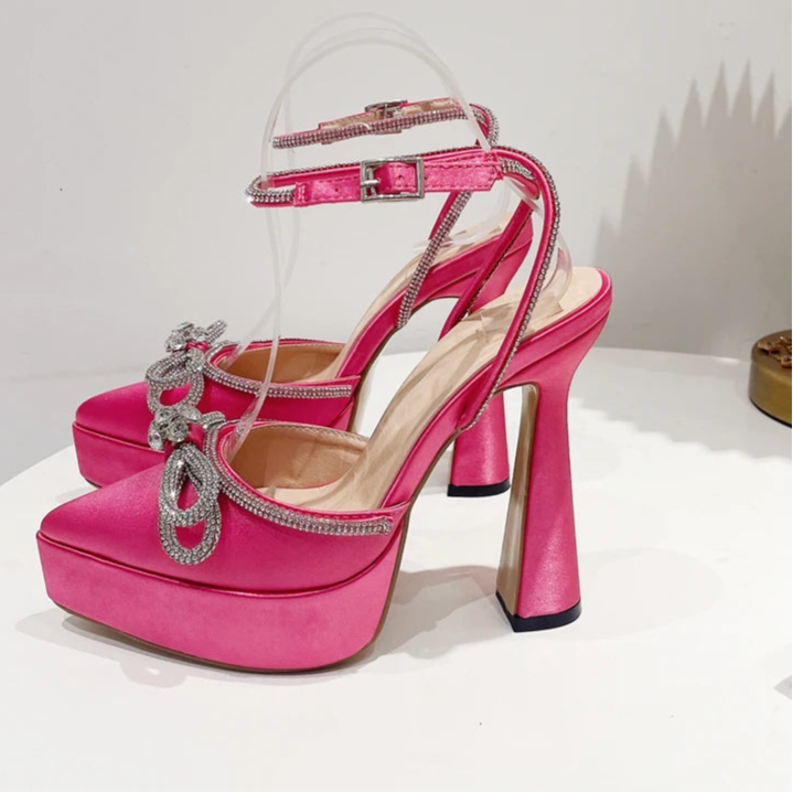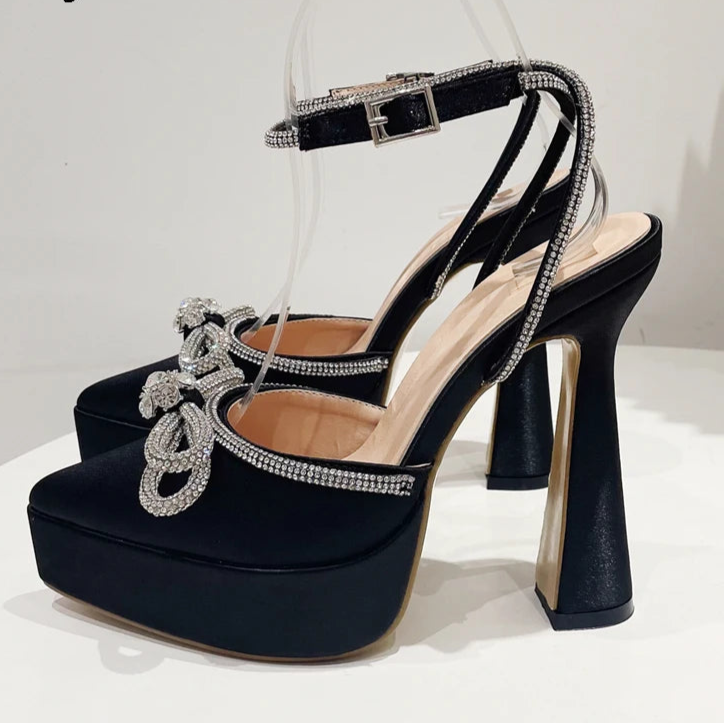 Butterfly-knot Crystal Pointed Toe Platform Heels Chunky Prom Shoes