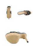 Super High Heels Slippers Sandals Women PU Leather Party Shoes Platform Heels Peep Toe Slip On Mules